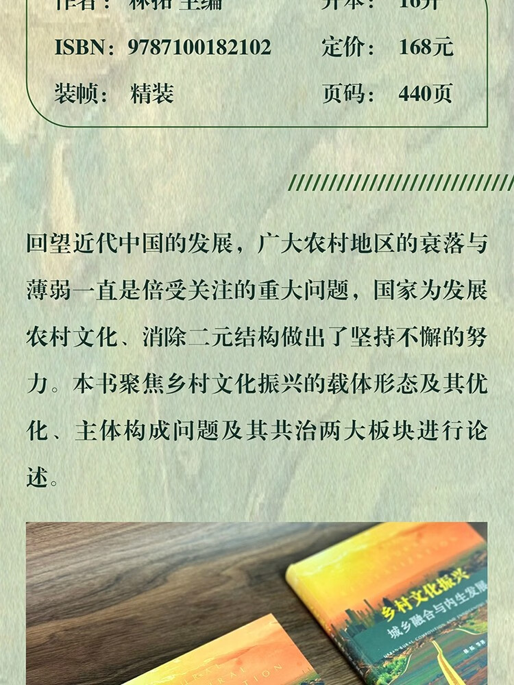 3. 本书从载体和主体两个方面入手分析,逻辑清晰,思路明确,破解了复杂的理论和实践难题,对于乡村文化振兴具有实务工作上的突破性意义和重要理论价值。