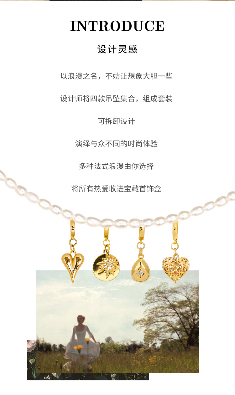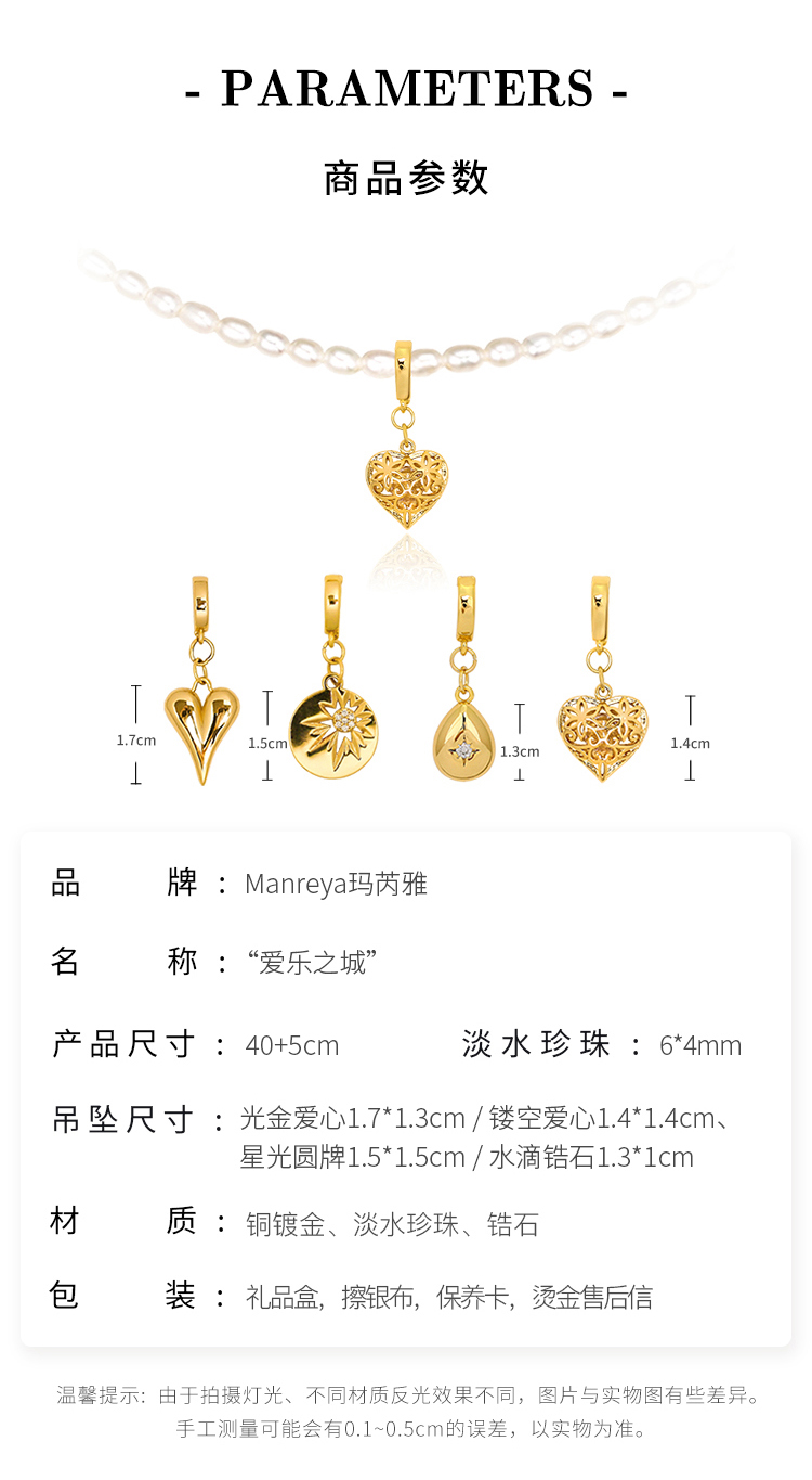 Manreya玛芮雅「爱乐之城」淡水珍珠法式复古吊坠套装项链可替换女锁骨链