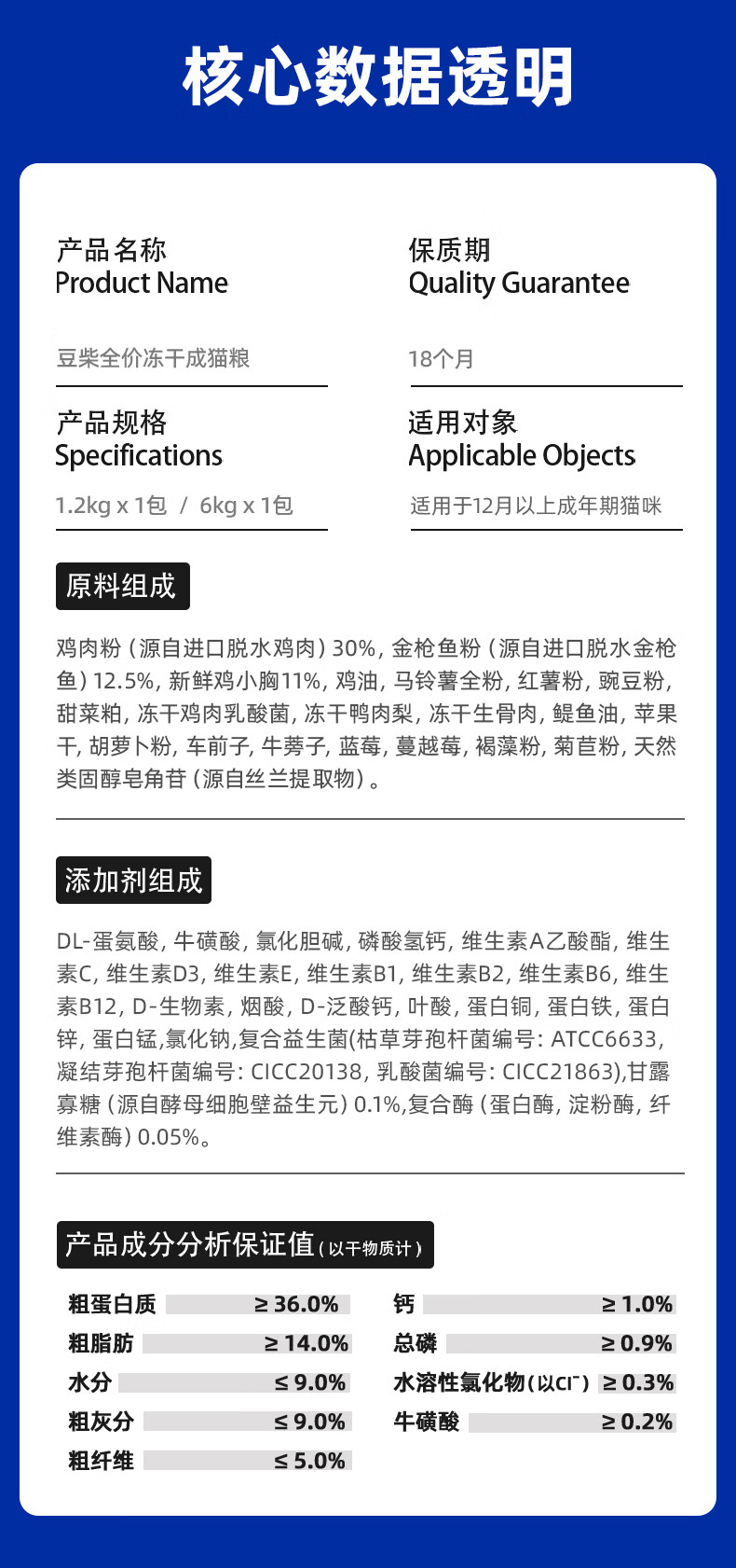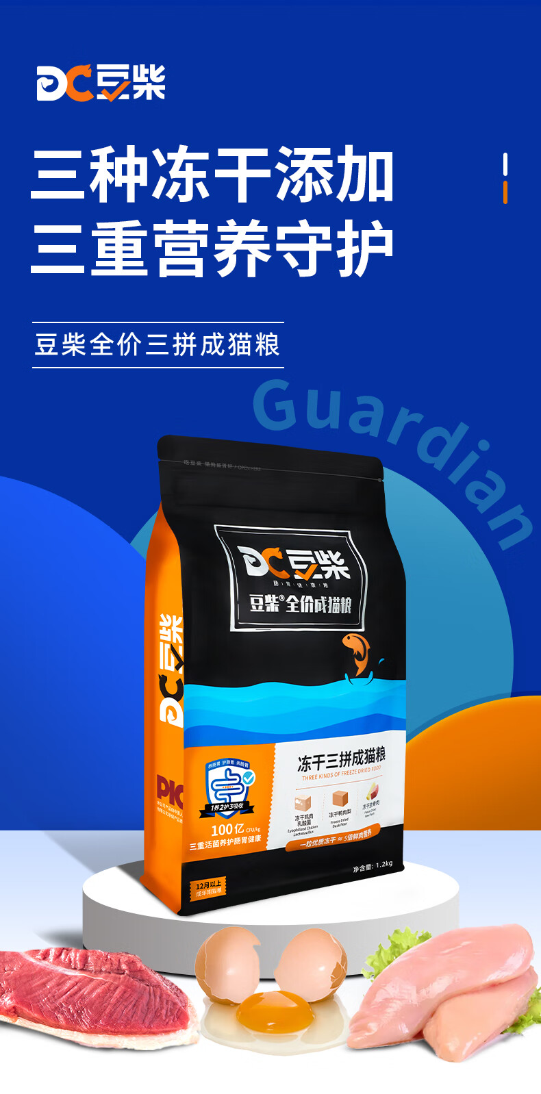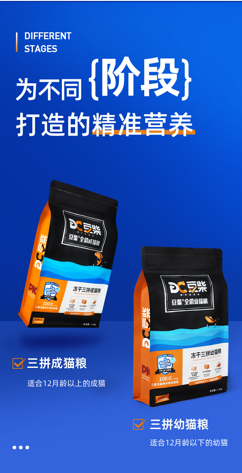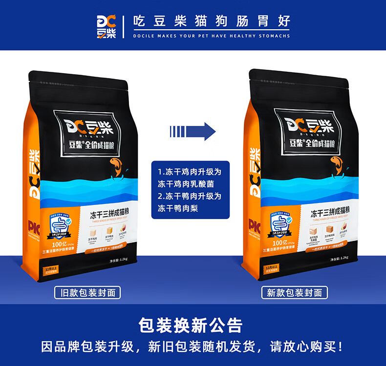 豆柴(docile)猫粮成猫冻干三拼无谷天然成年全价粮有益菌呵肠胃健康怀孕哺乳期美短英短主粮6kg