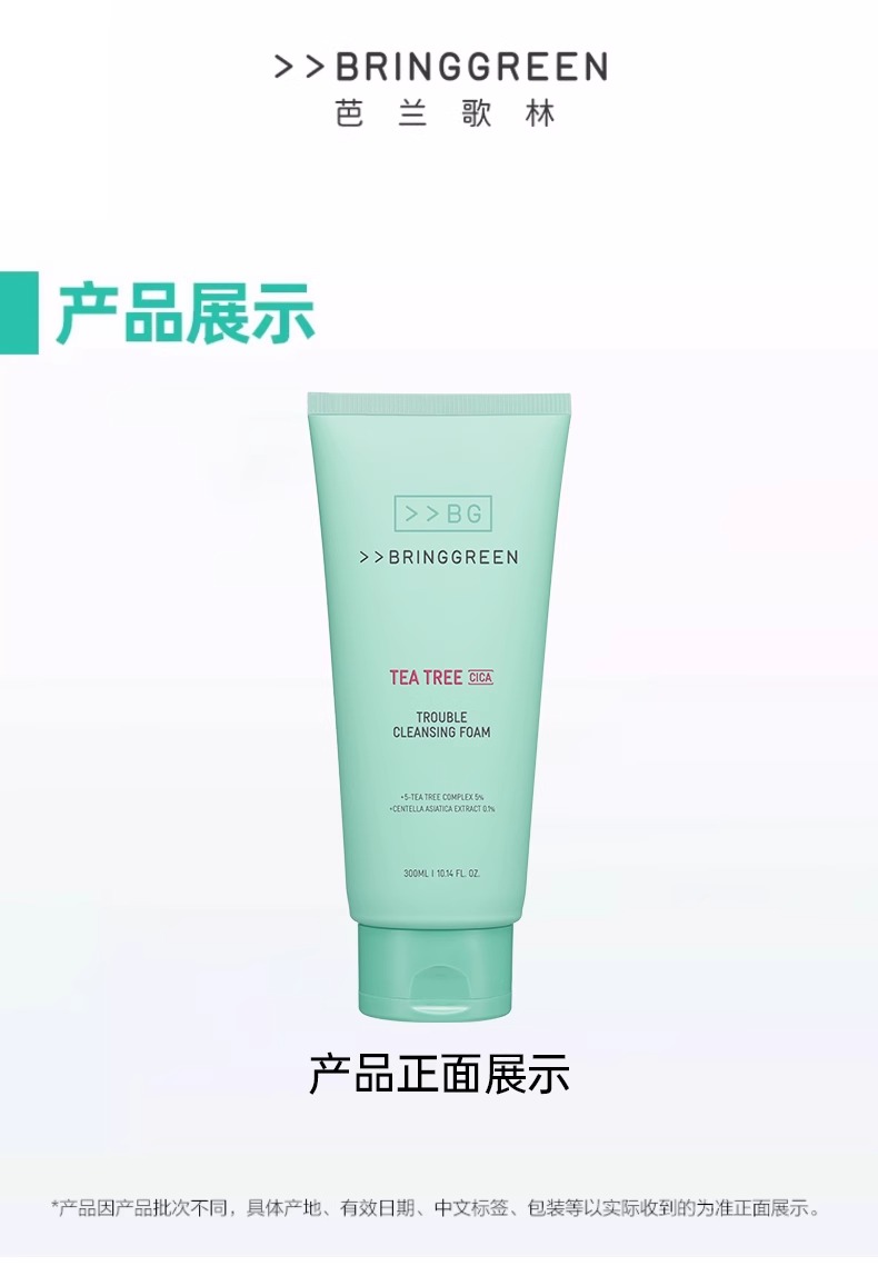 芭兰歌林BRING GREEN茶树积雪草洗面奶300ml