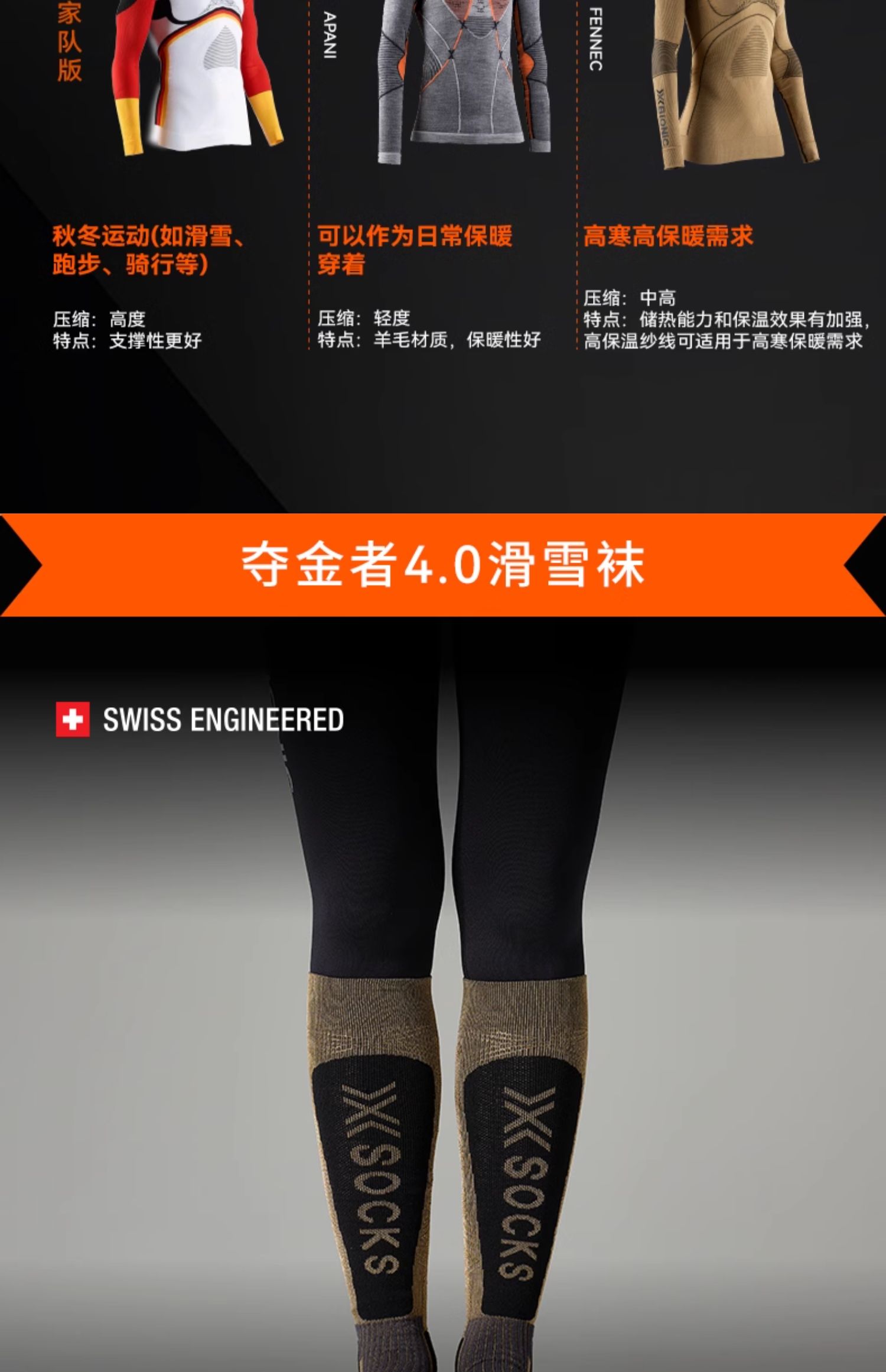 X-SOCKS XS-SSXXW19U 夺金者4.0热反射滑雪袜-Helixx Gold 4.0 -A