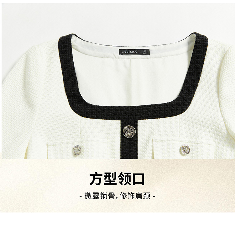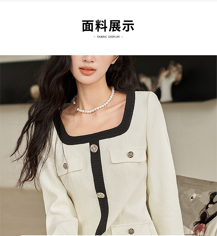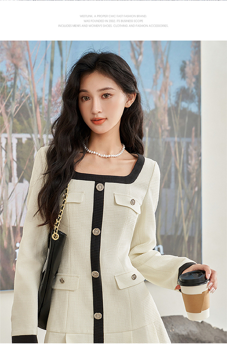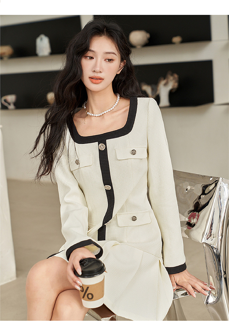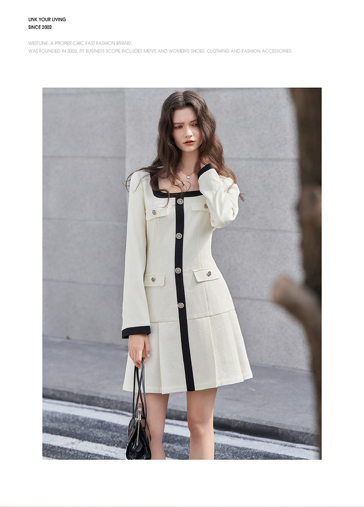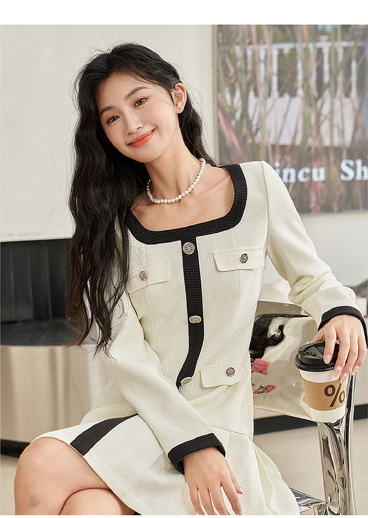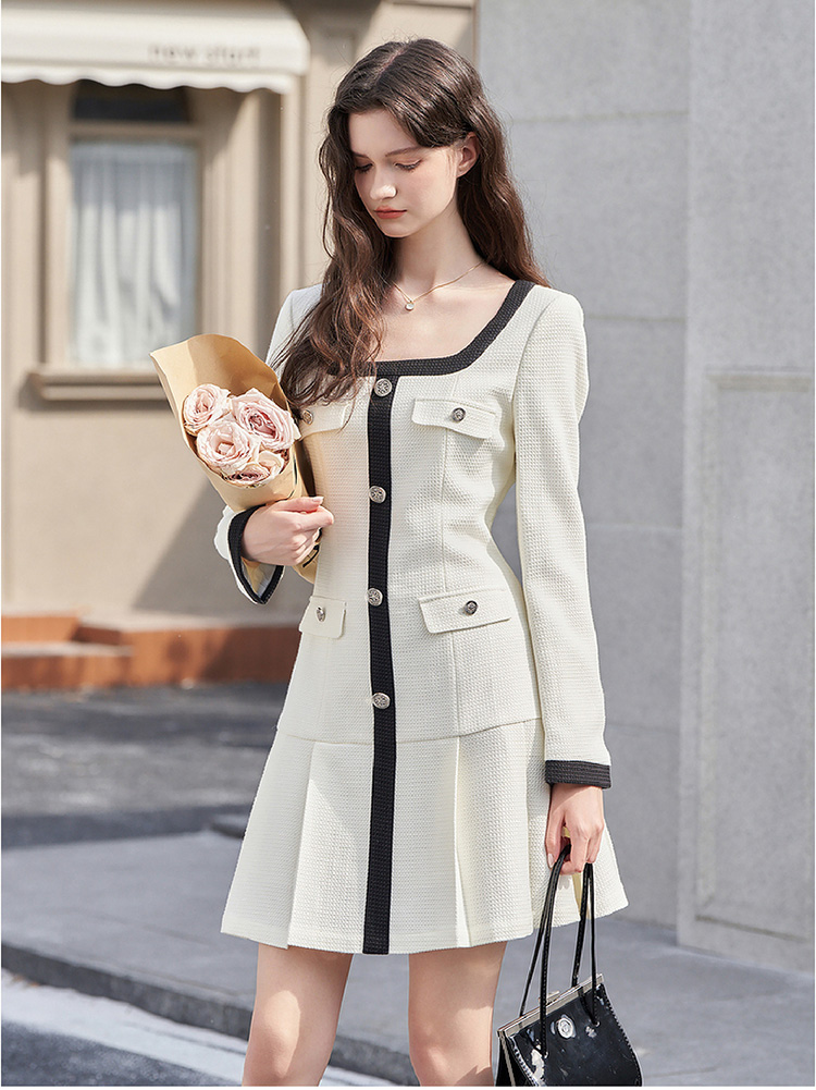 法式小香风米白色连衣裙秋冬新款气质小个子百褶短裙V2138567