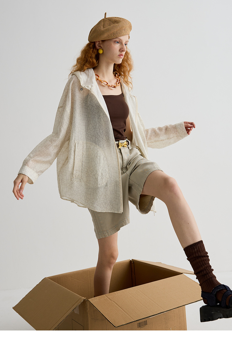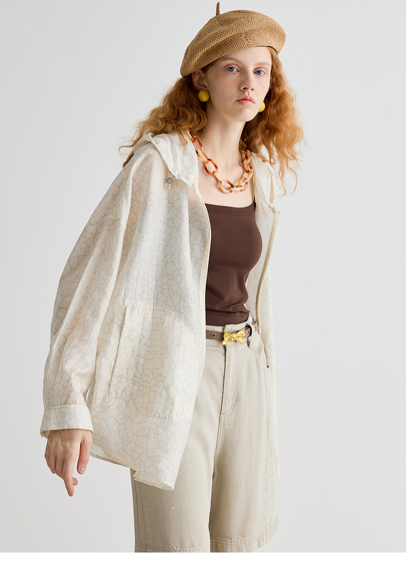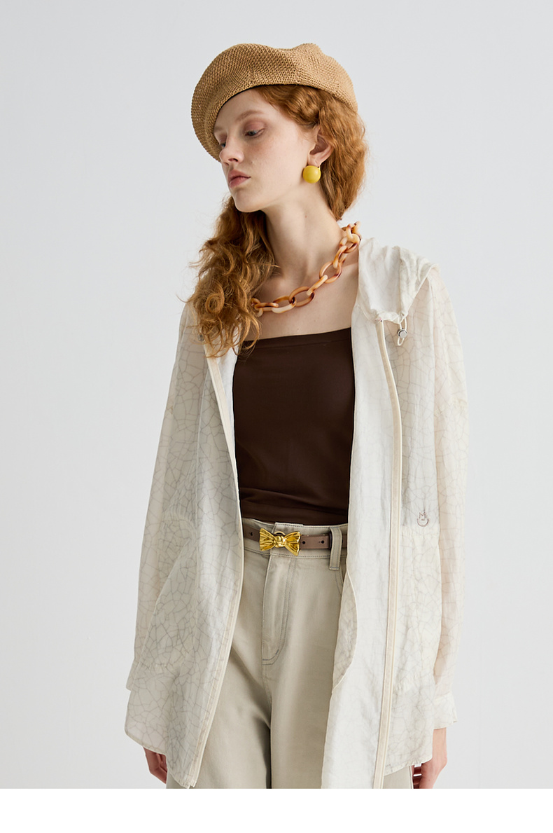 谜底外套长袖女2025夏新品度假连帽薄款大廓形中长外套252MW0605