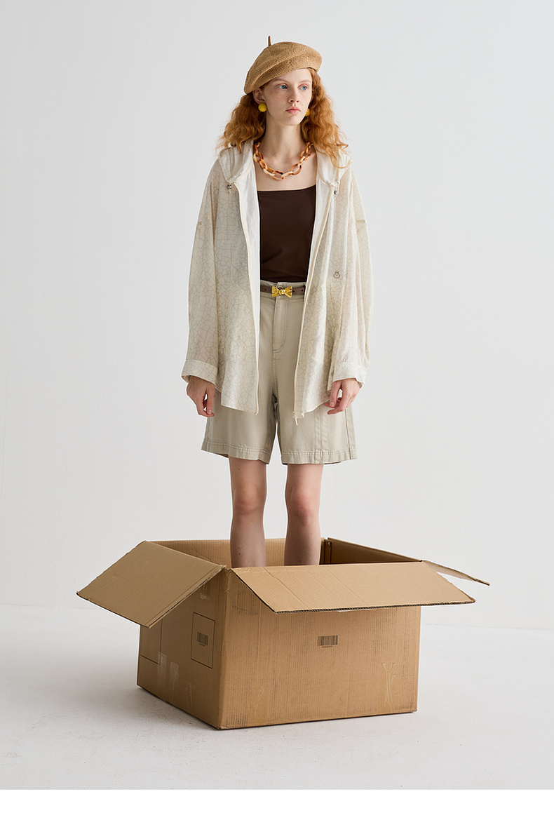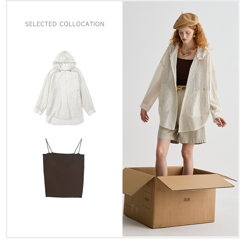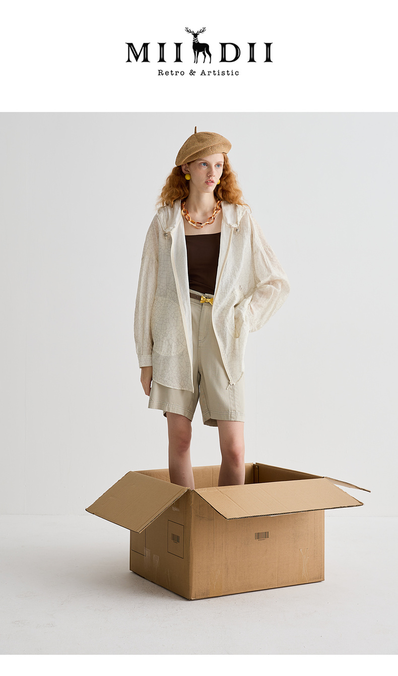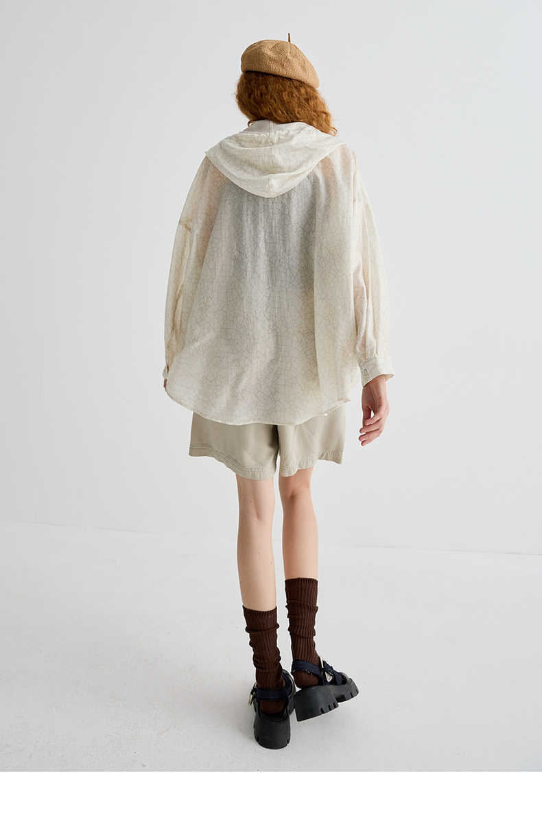 谜底外套长袖女2025夏新品度假连帽薄款大廓形中长外套252MW0605