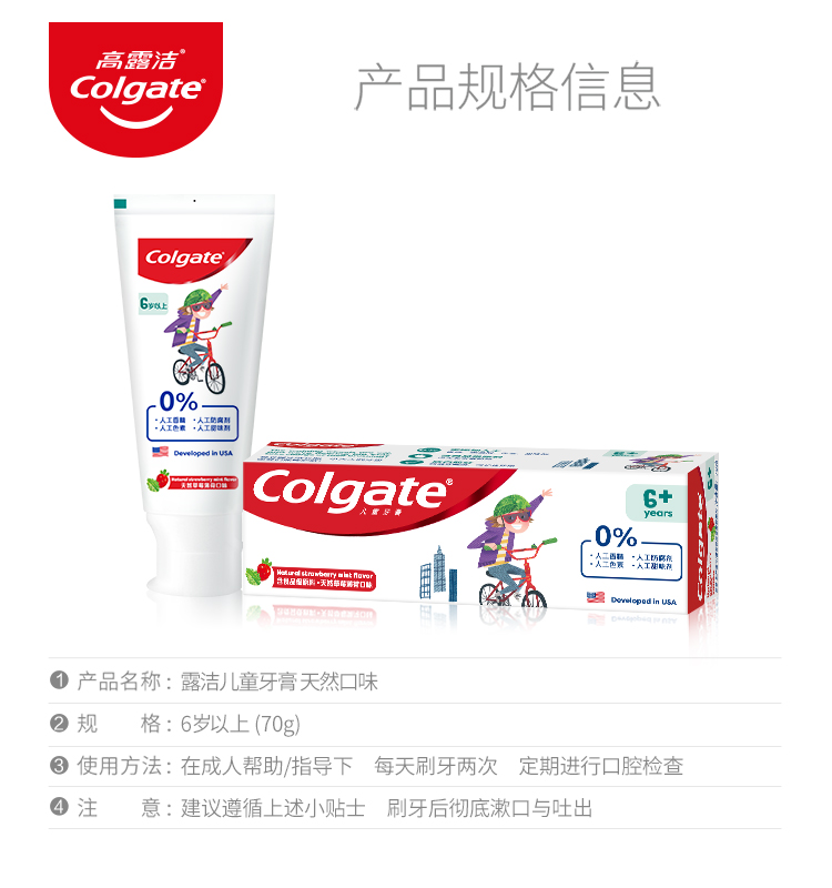 高露洁少儿健齿氟防蛀牙膏天然草莓味70克*2 6岁以上 WY