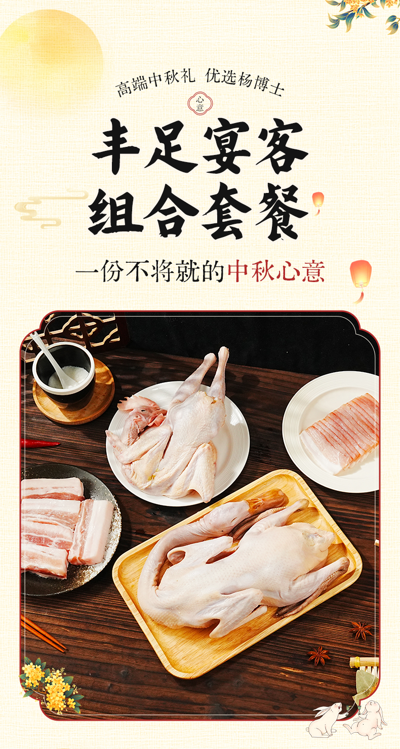 【杨博士自营 丰足宴客套餐】溪水河鸭1只 +童子鸡1只 + 黑猪五花肉2份 + 黑猪腿肉片2份+礼包*1
