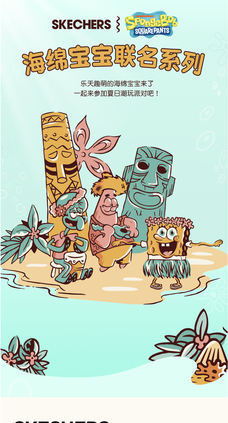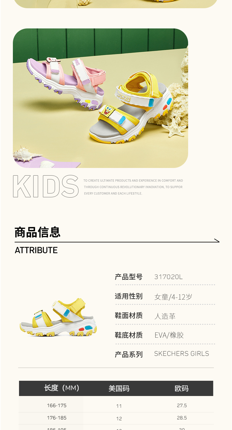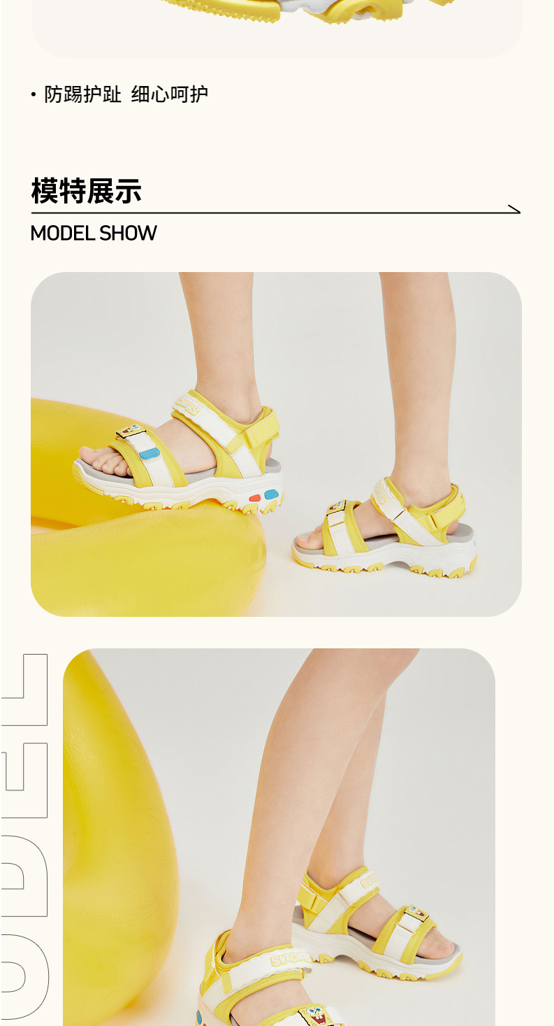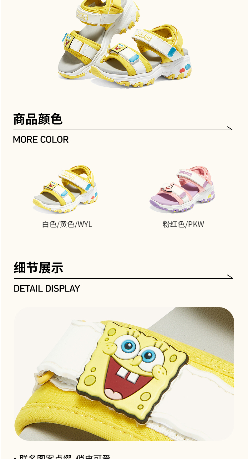小斯凯奇海绵宝宝联名凉鞋新款女童卡通沙滩鞋317020L