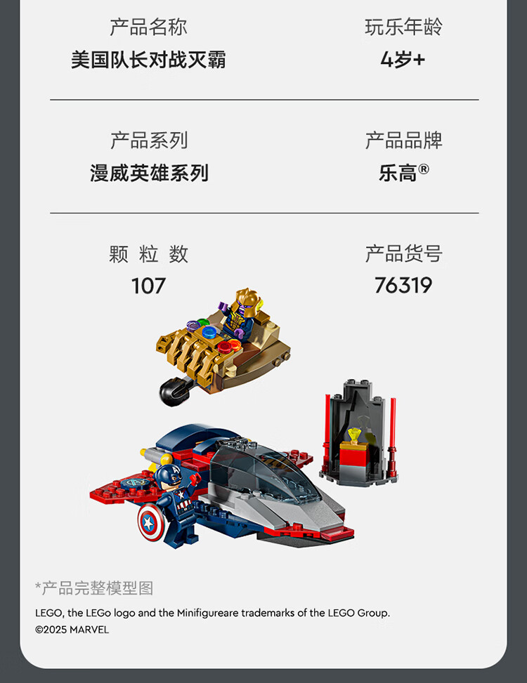 乐高积木 L76319 超级英雄系列美国队长对战灭霸