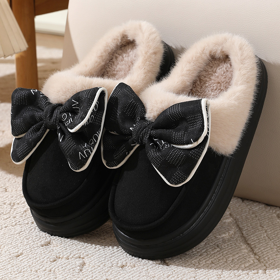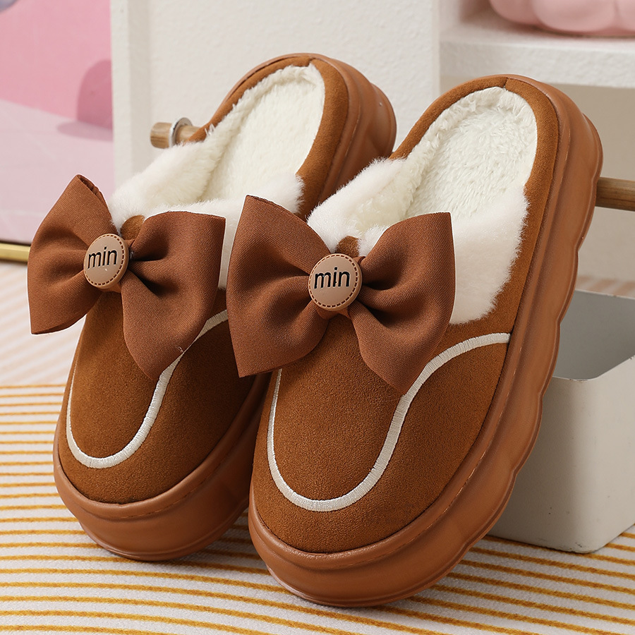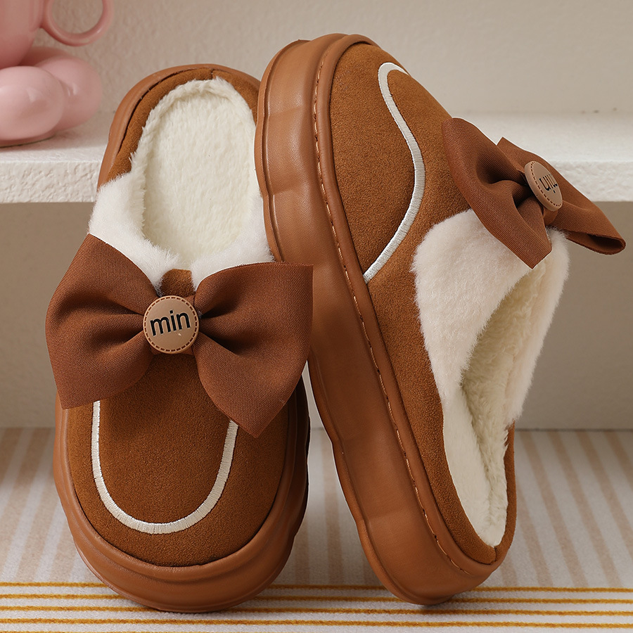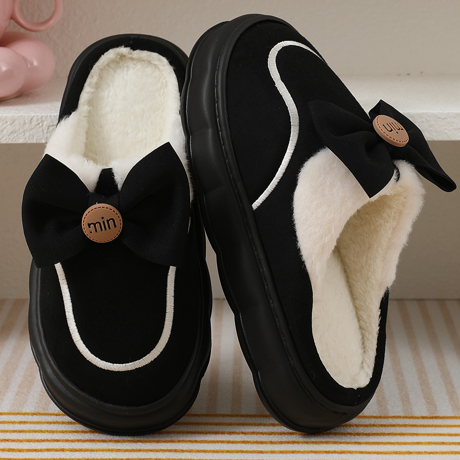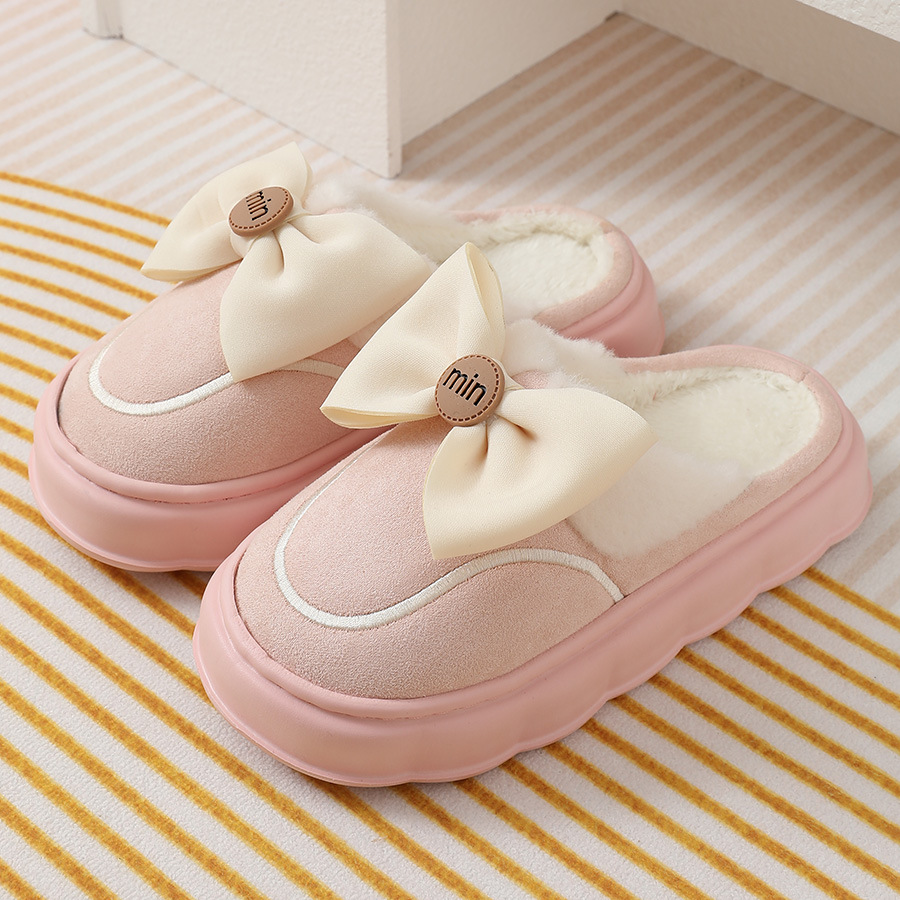 2024新款棉拖鞋女秋冬季蝴蝶结家居室内加绒保暖防滑厚底女拖鞋