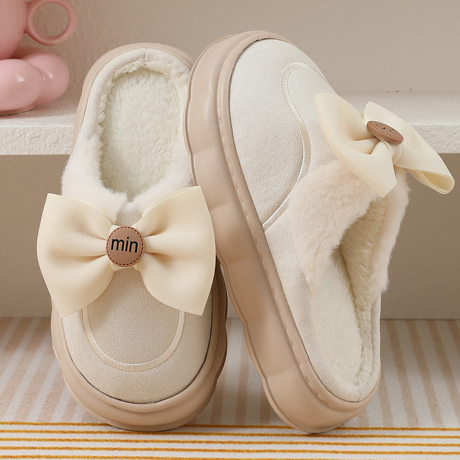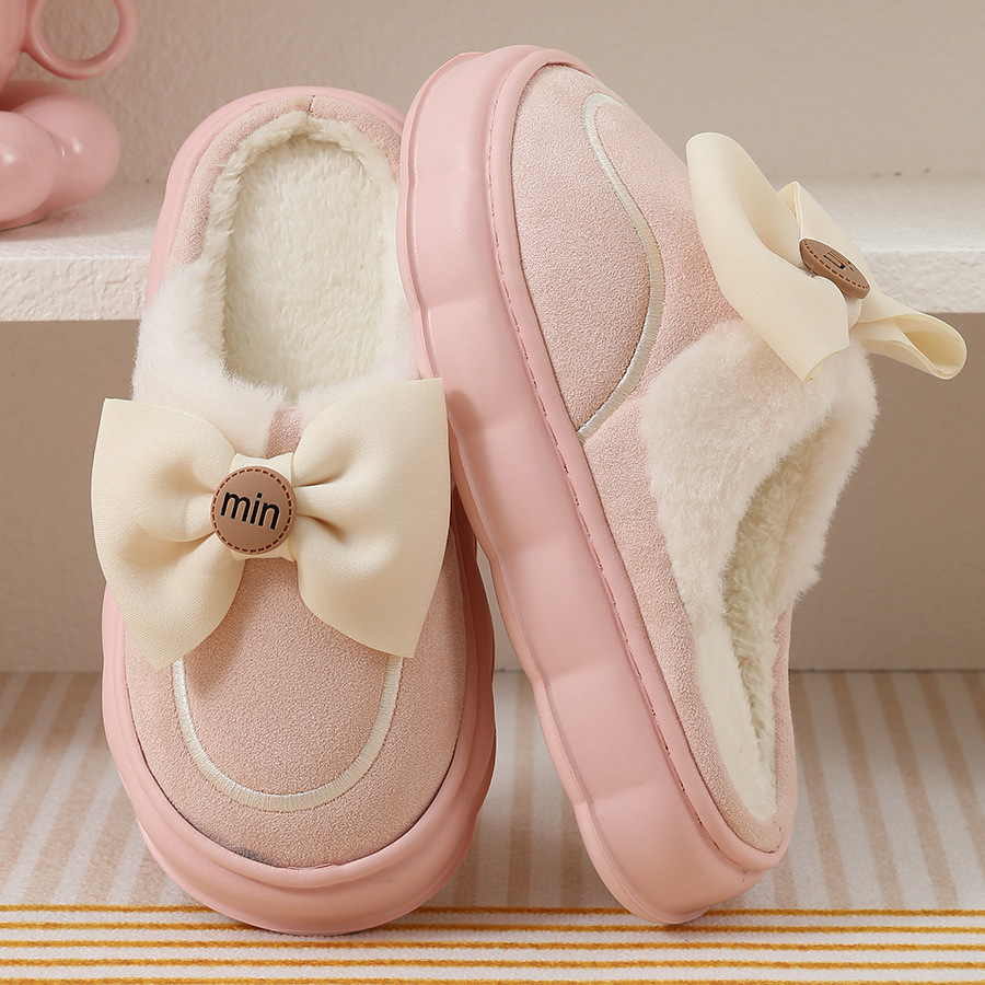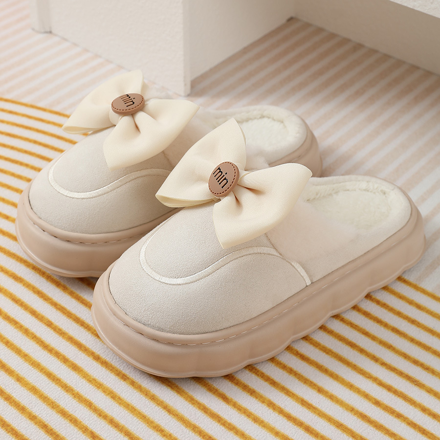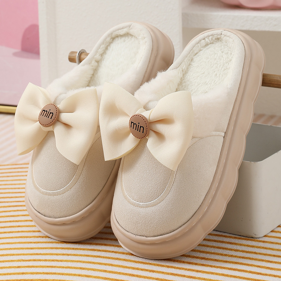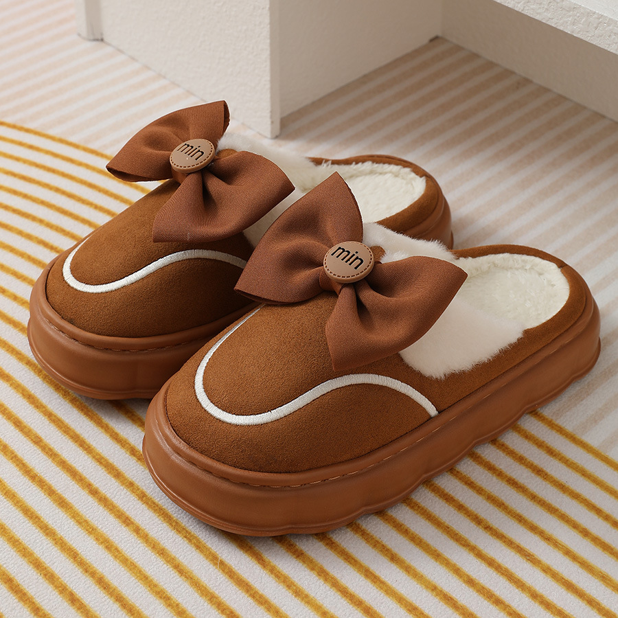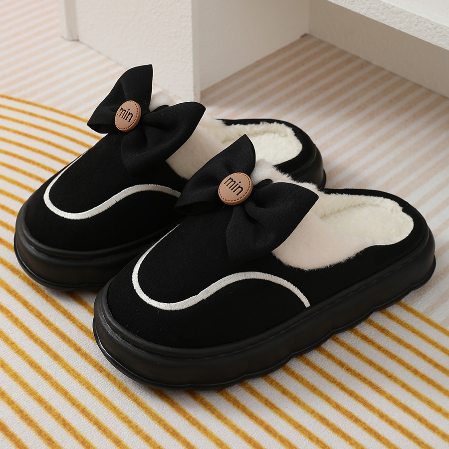 2024新款棉拖鞋女秋冬季蝴蝶结家居室内加绒保暖防滑厚底女拖鞋