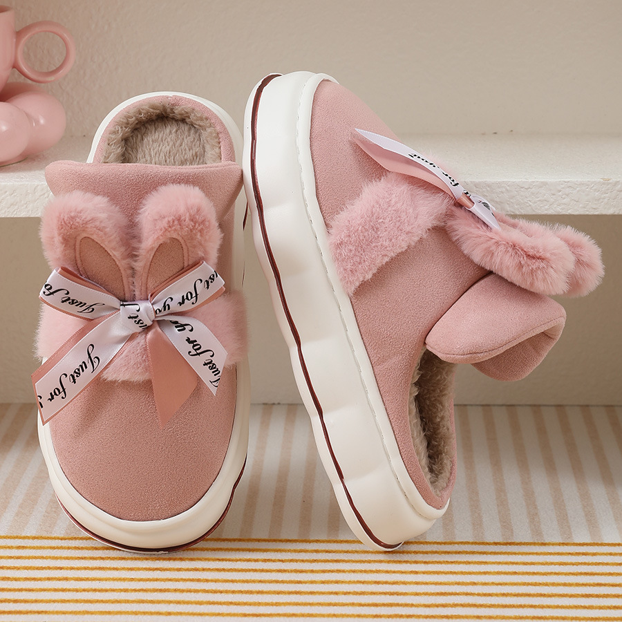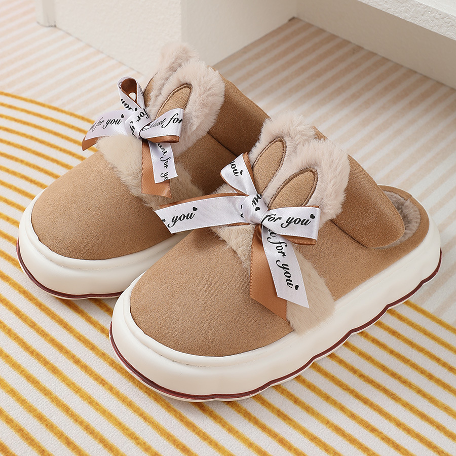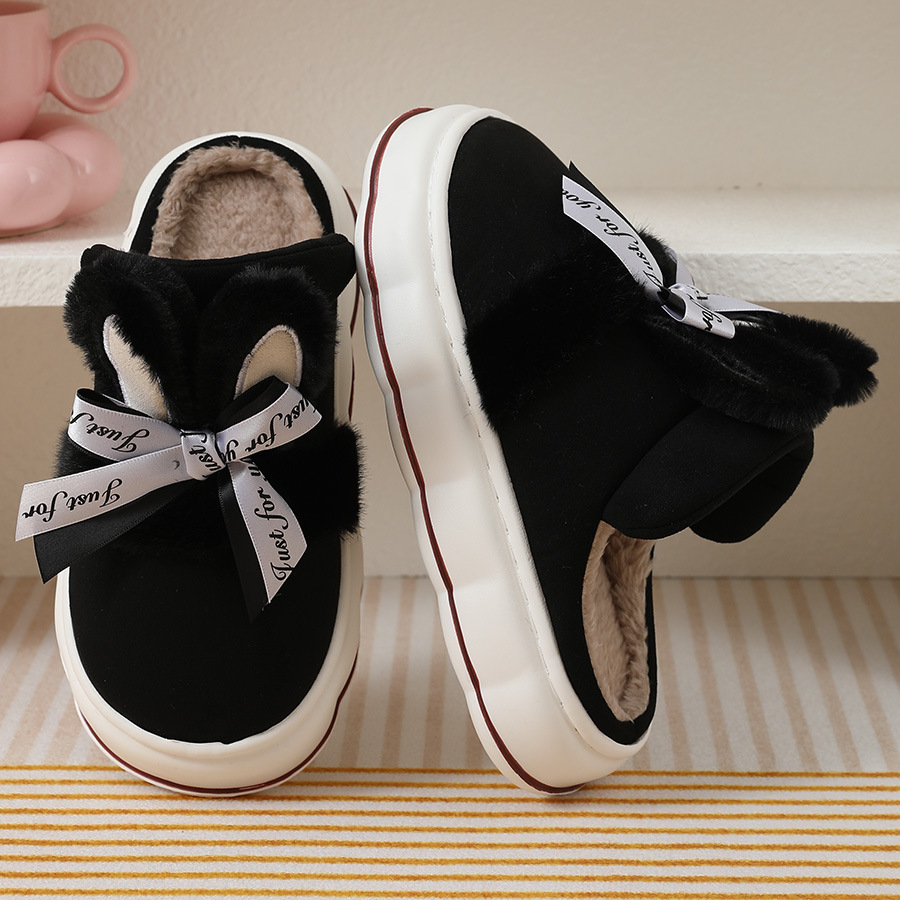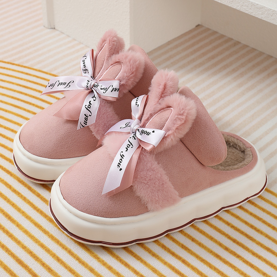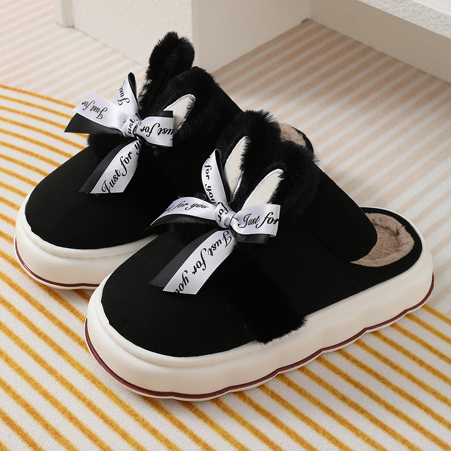 2024新款棉拖鞋女秋冬季蝴蝶结家居室内加绒保暖防滑厚底女拖鞋