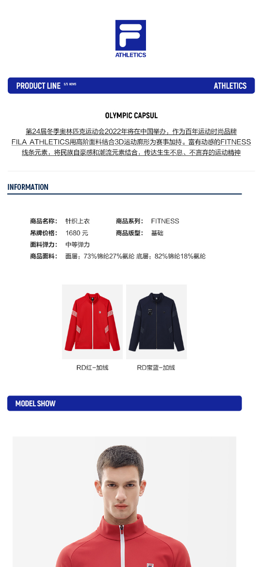 FILA男子运动外套2022年春季新款时尚针织加绒A11M211507F