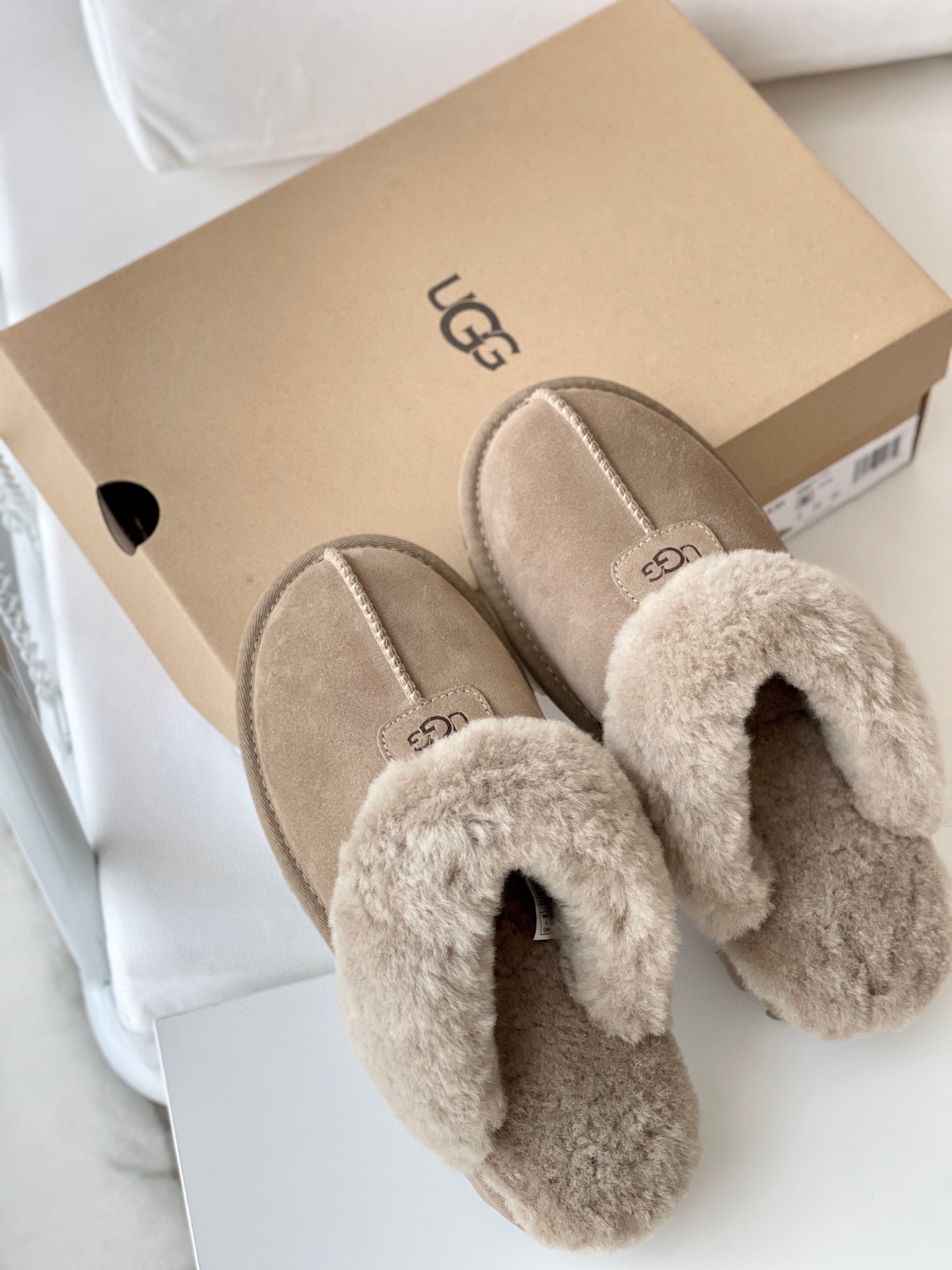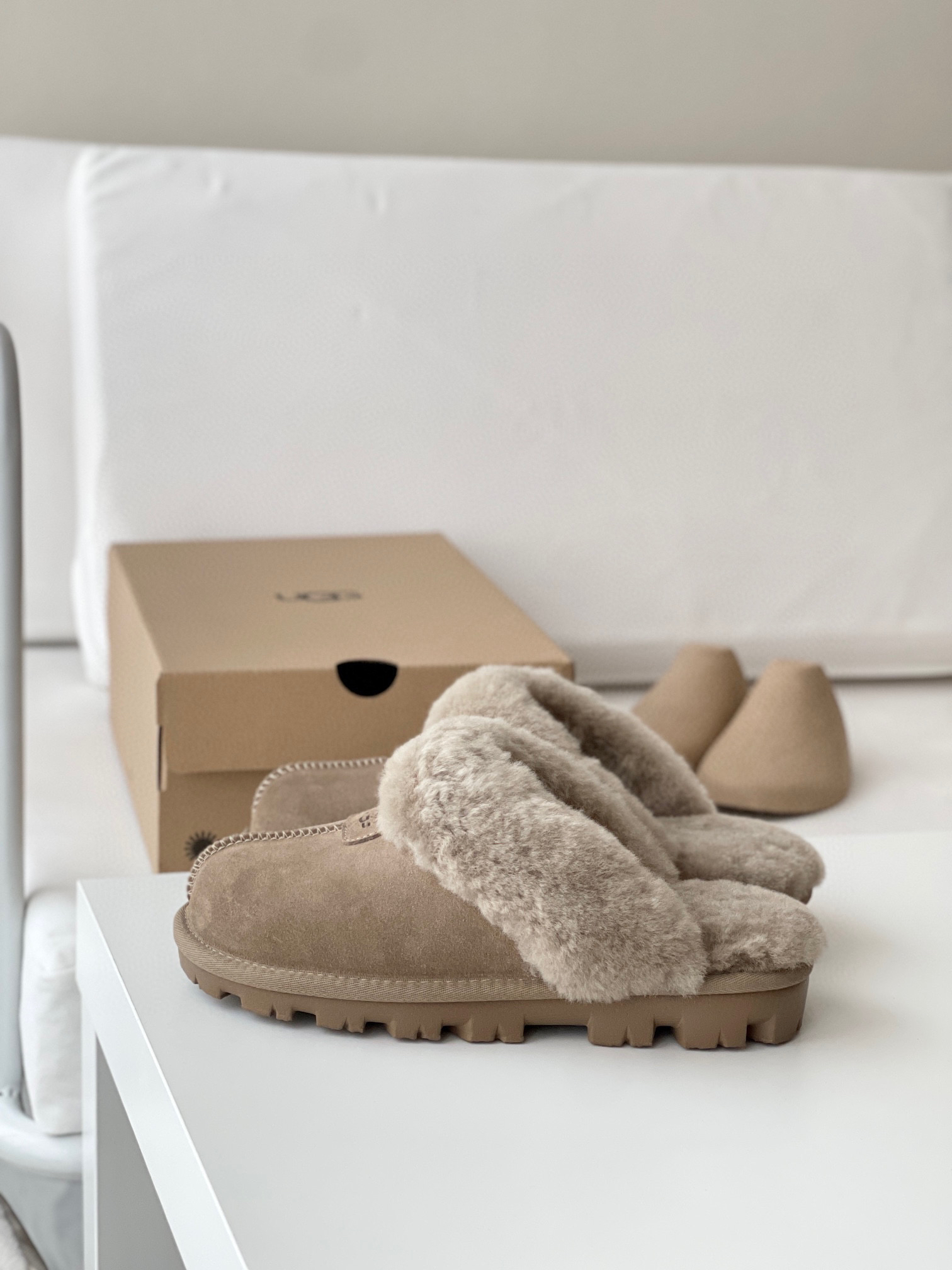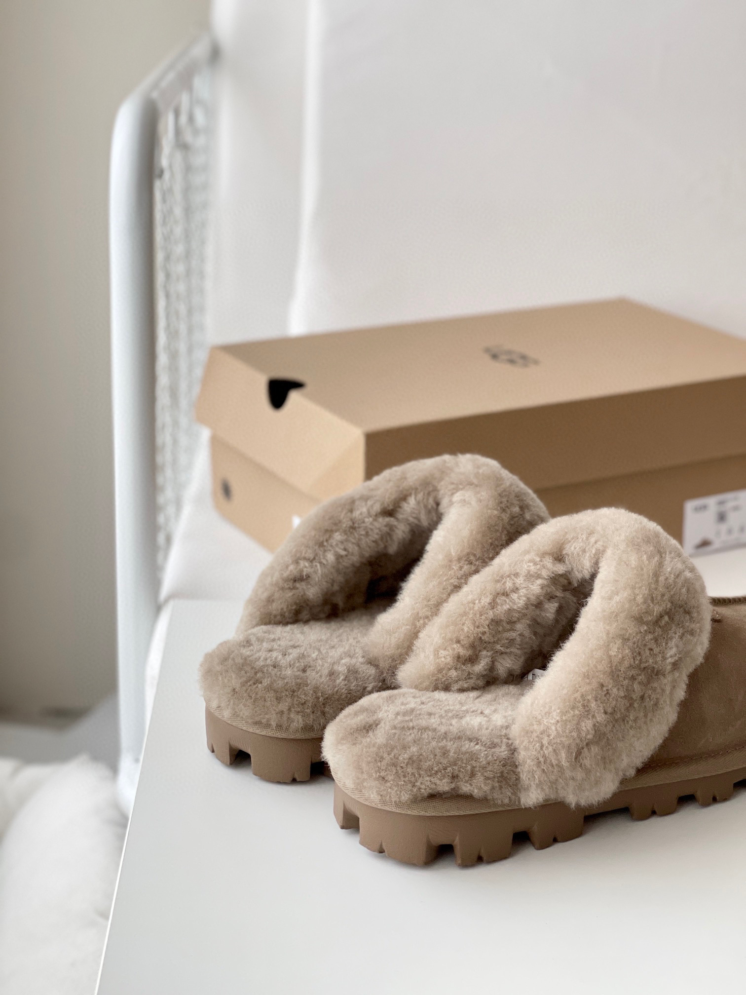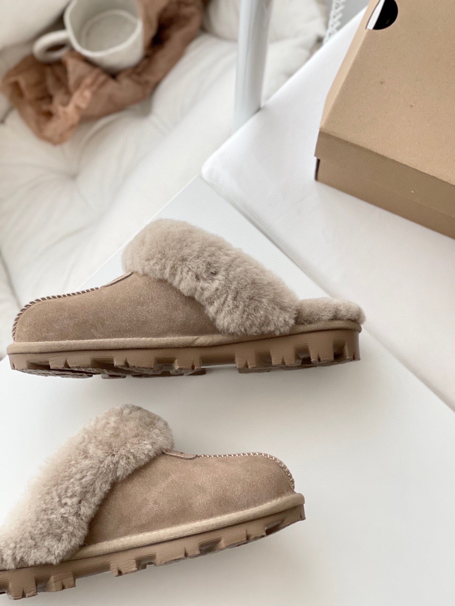 千颂伊同款(星拖) 采用:超强防水的A级皮料,EVA超轻大底,隆丰17mm毛长的羊皮毛一体!后半脚掌有3毫米高的乳胶垫!走路不会掉脚❗️ 最近几年 深受各路人士的喜爱!🉑️居家🉑️外穿❗️ 颜色:羚羊粽 -栗色- 黑色 -灰色 鞋码:35-44(正码选择)