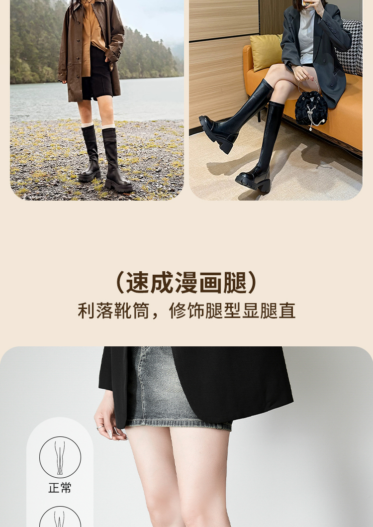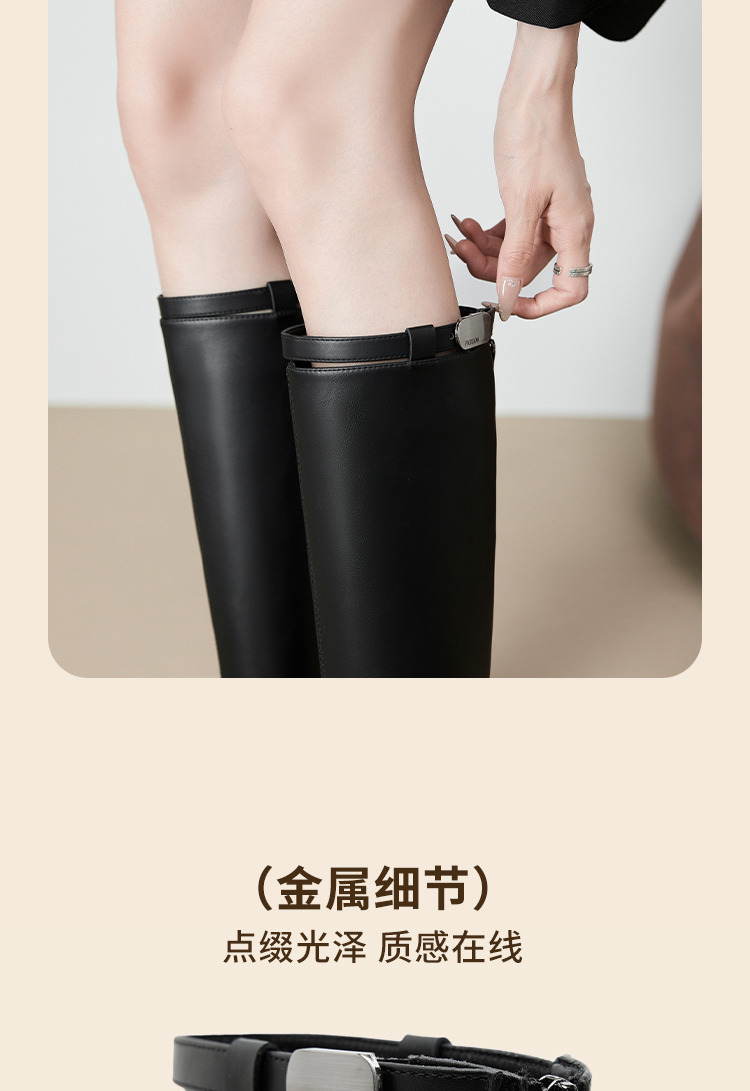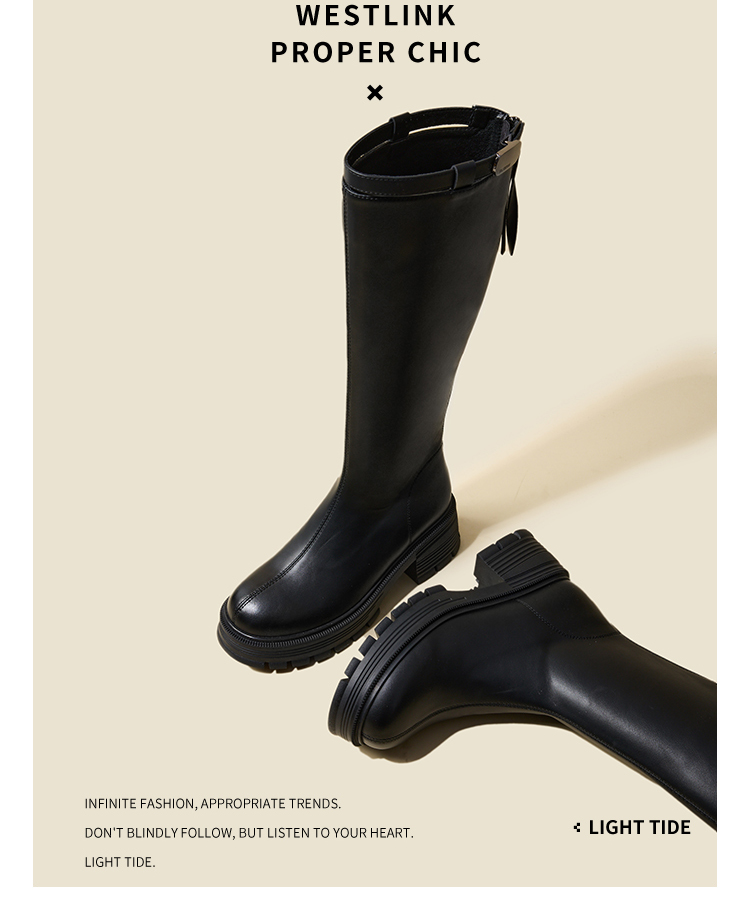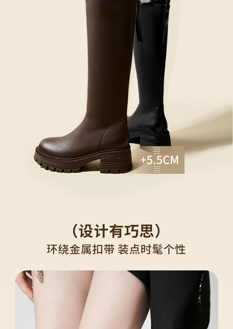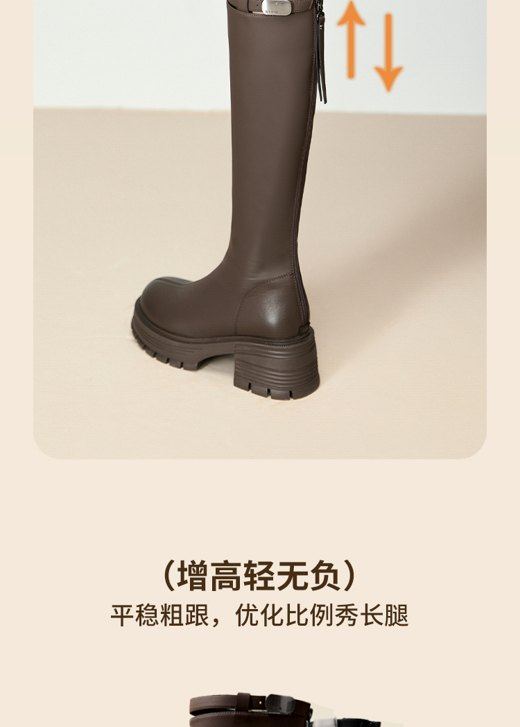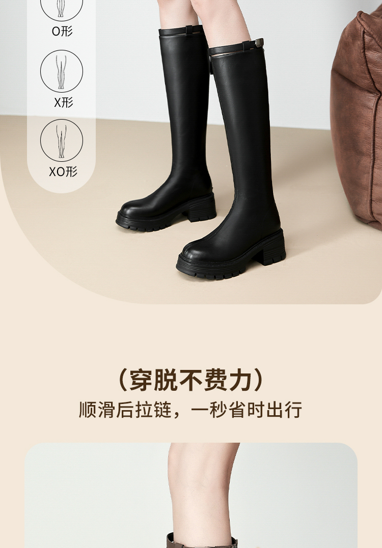 西遇高筒骑士靴女新款秋冬英伦风圆头长靴小个子厚底长筒靴V3947752