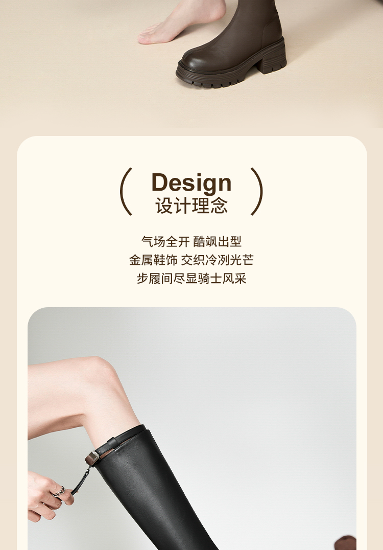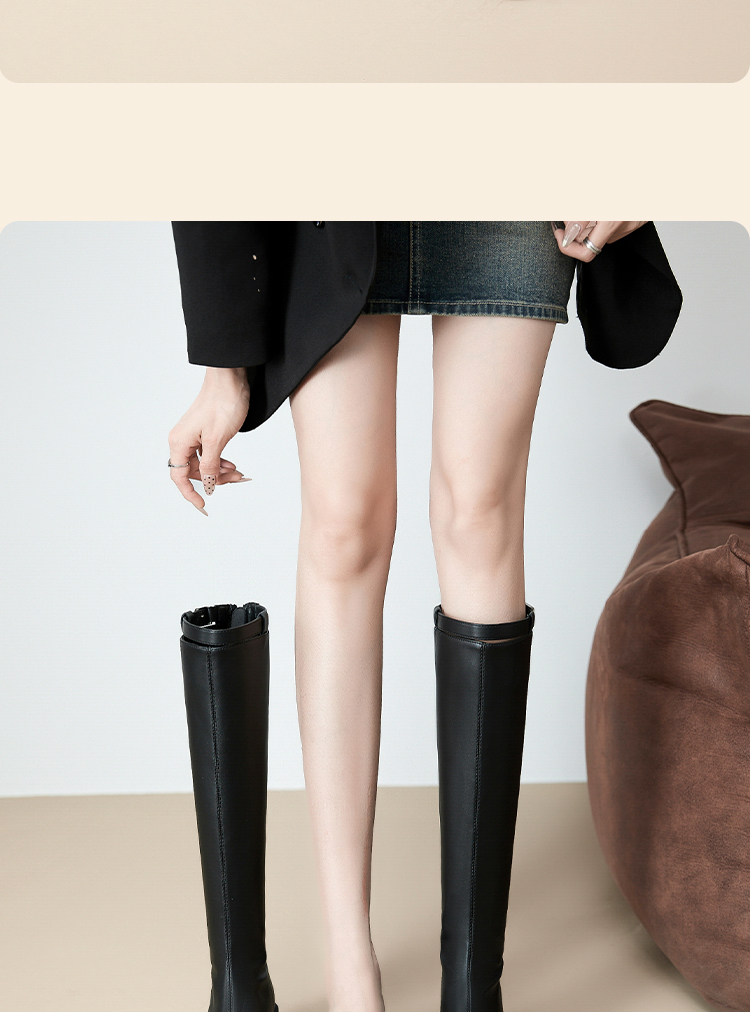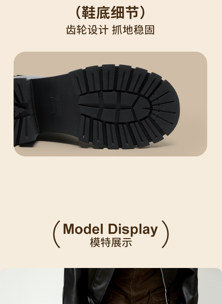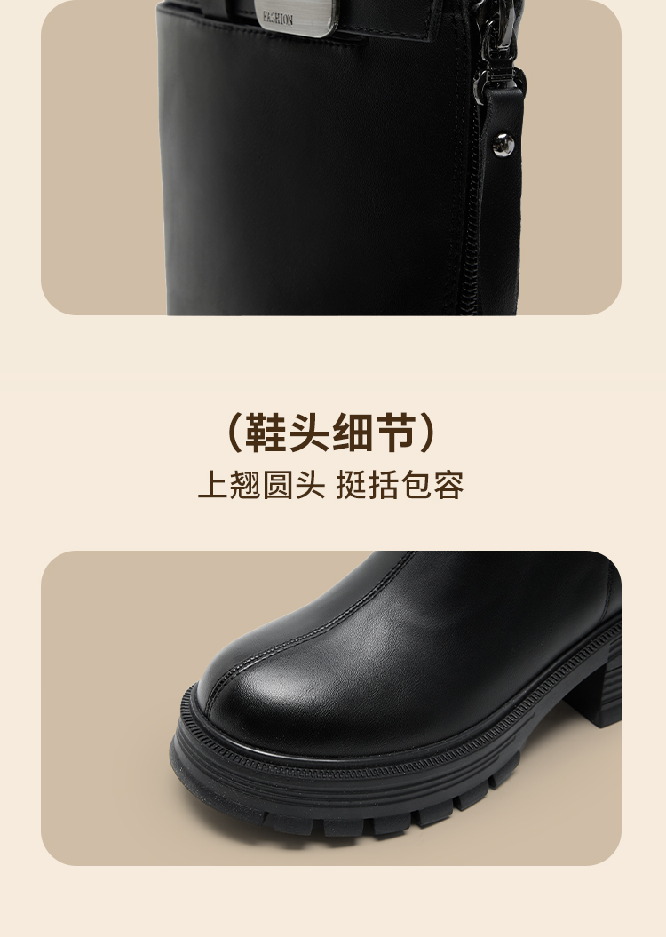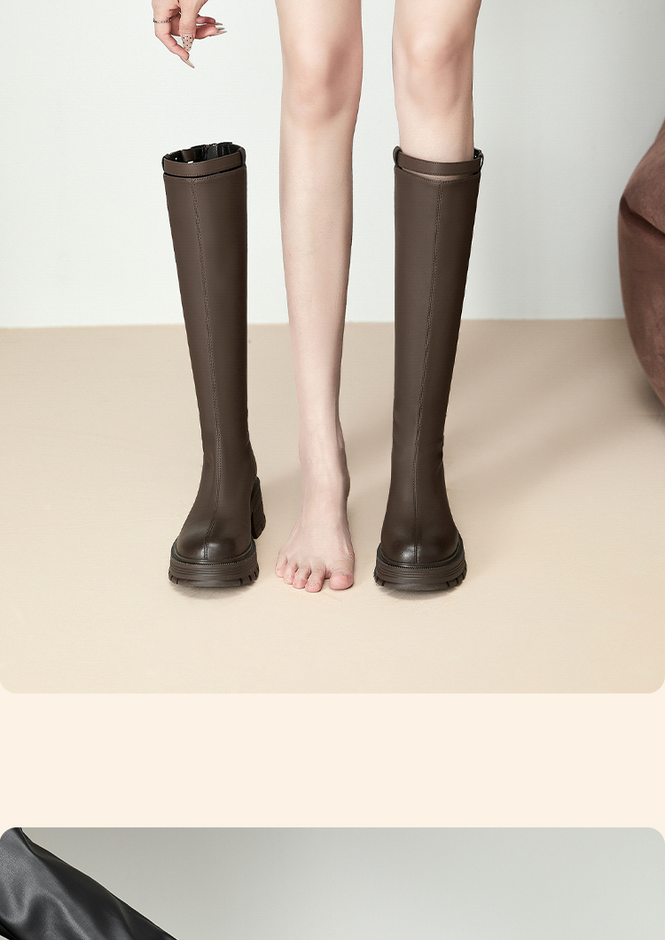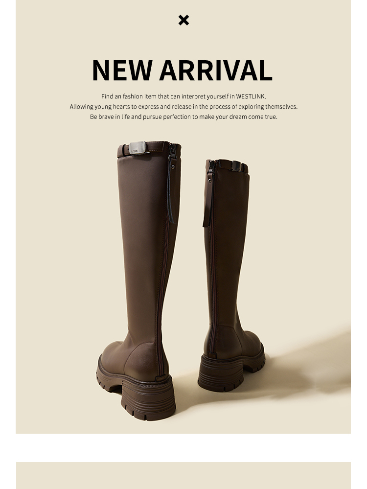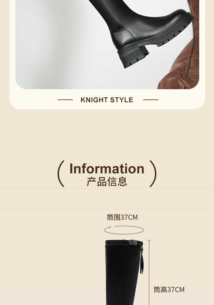 西遇高筒骑士靴女新款秋冬英伦风圆头长靴小个子厚底长筒靴V3947752