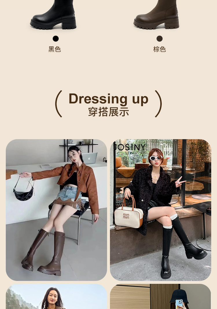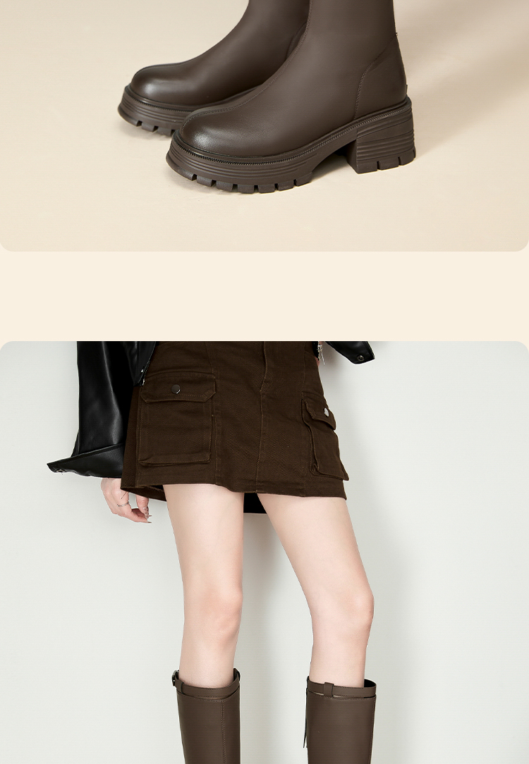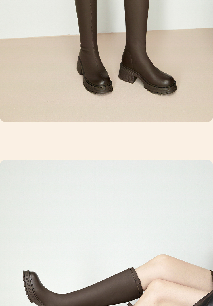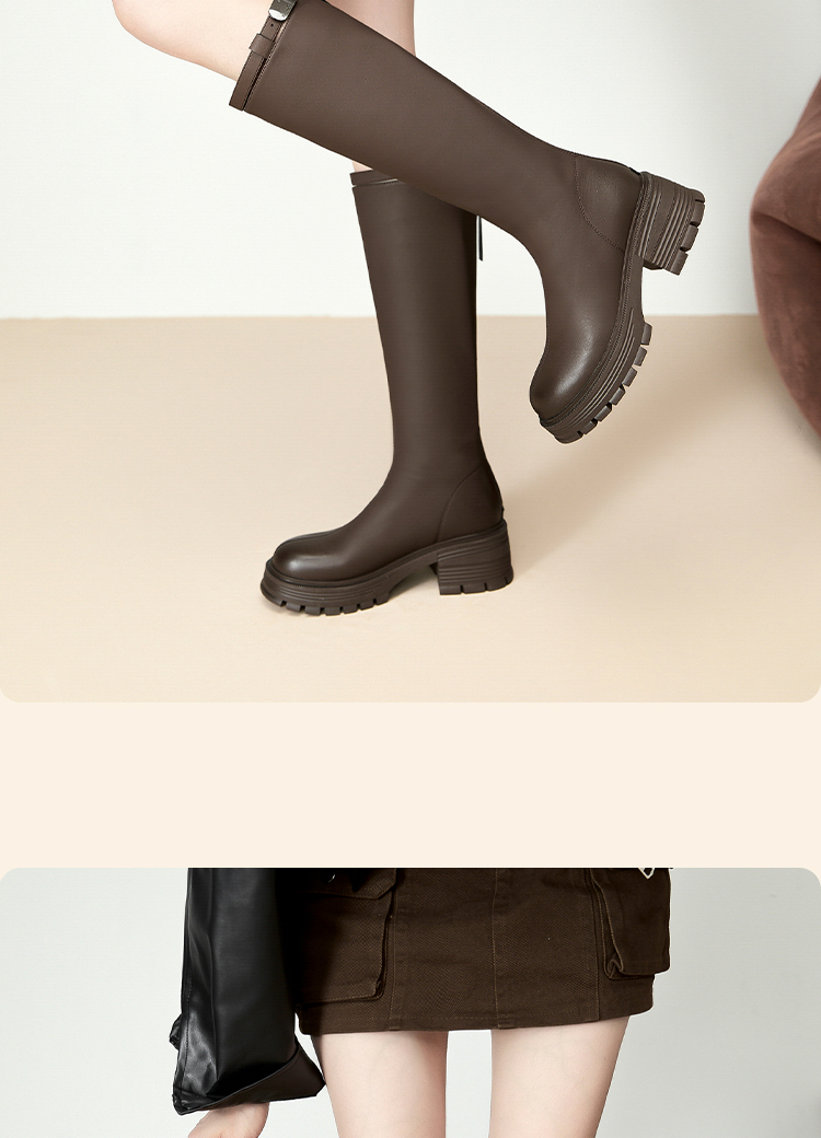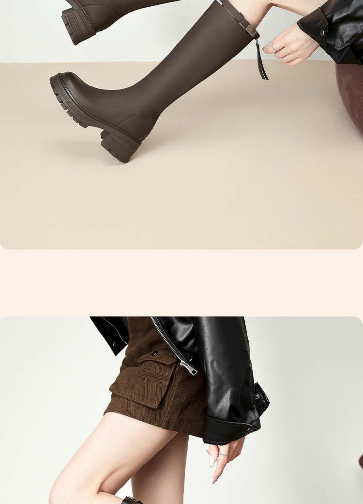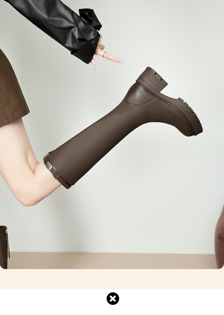 西遇高筒骑士靴女新款秋冬英伦风圆头长靴小个子厚底长筒靴V3947752