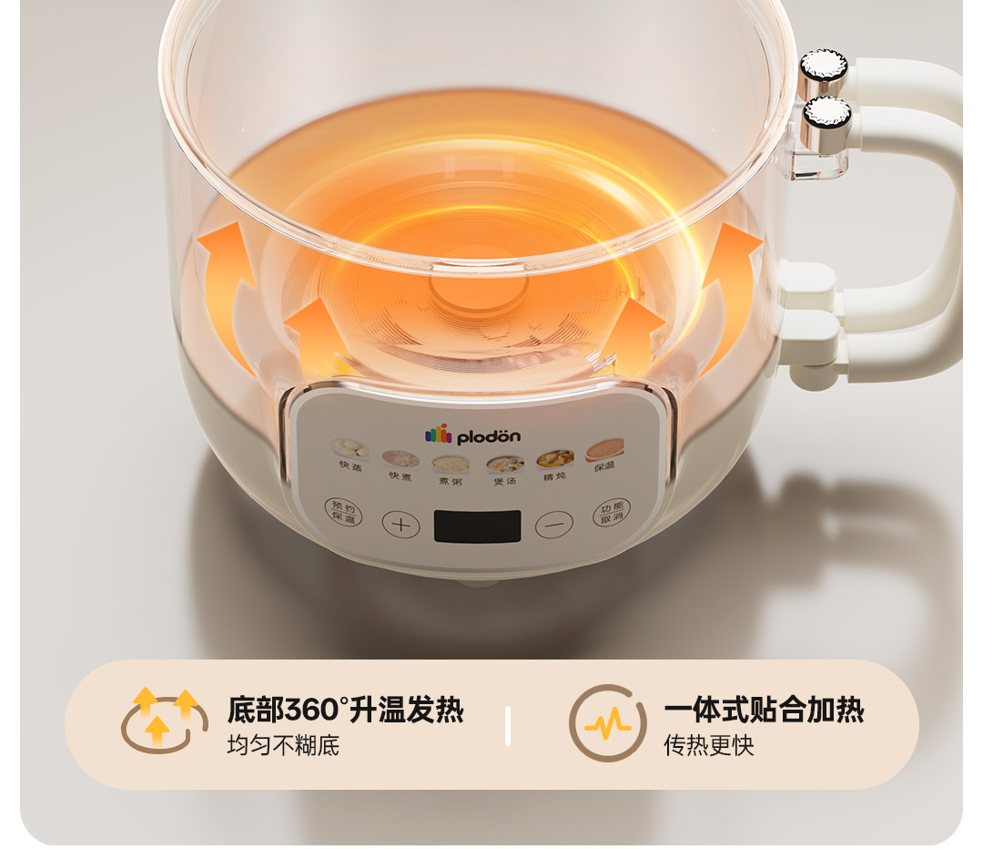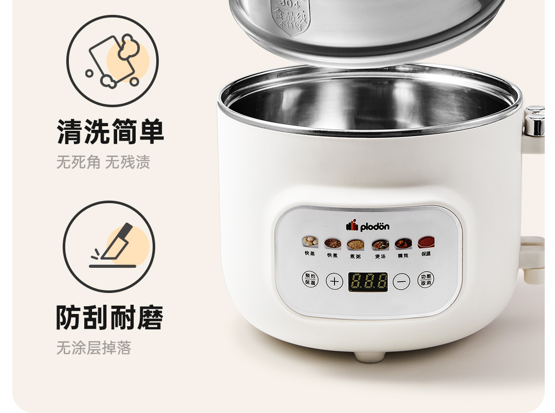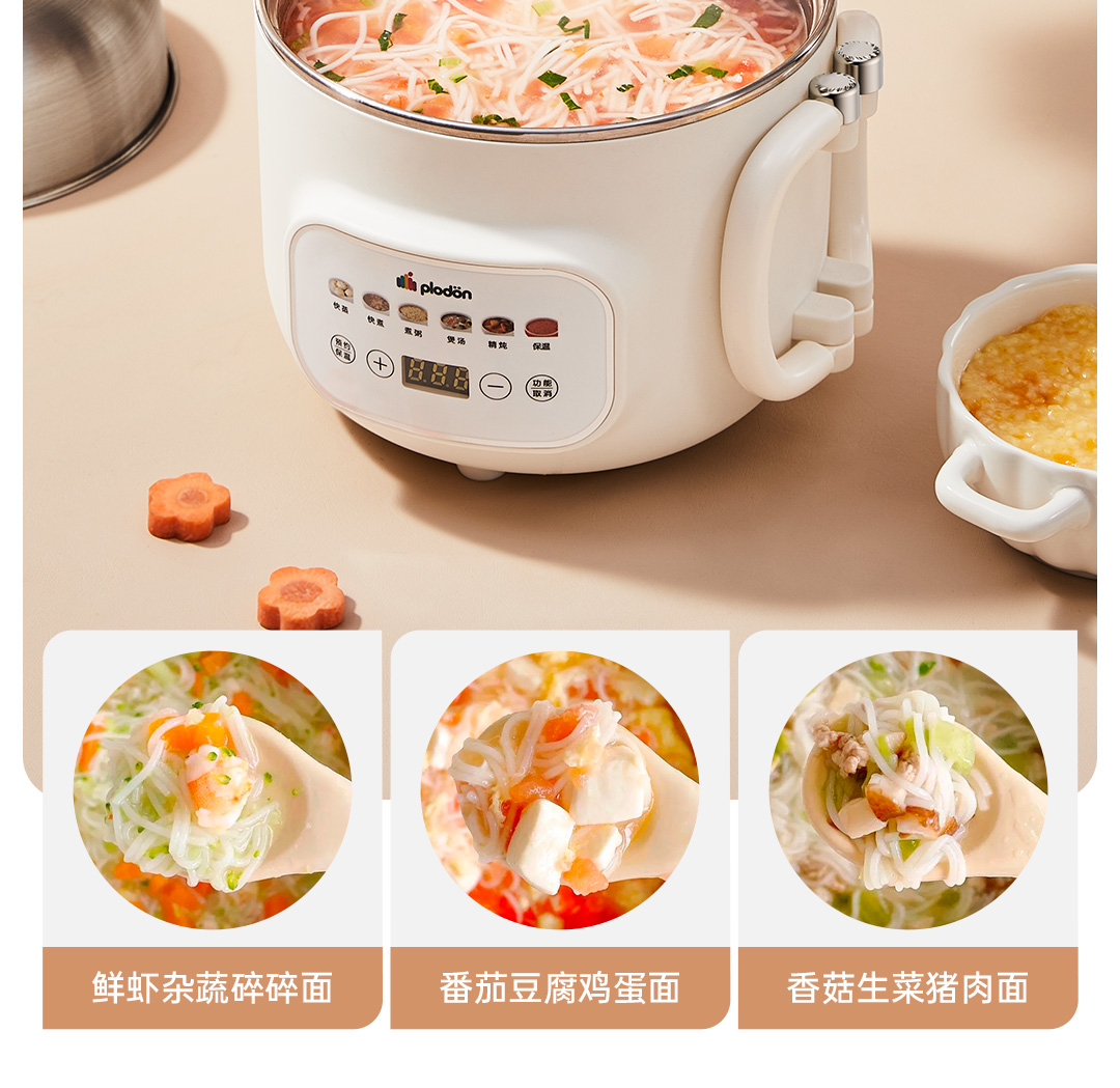 浦利顿婴儿辅食锅宝宝电炖锅煮粥锅BB煲煲汤熬粥1.6L家用宝宝蒸煮锅PLD-DZG-B600