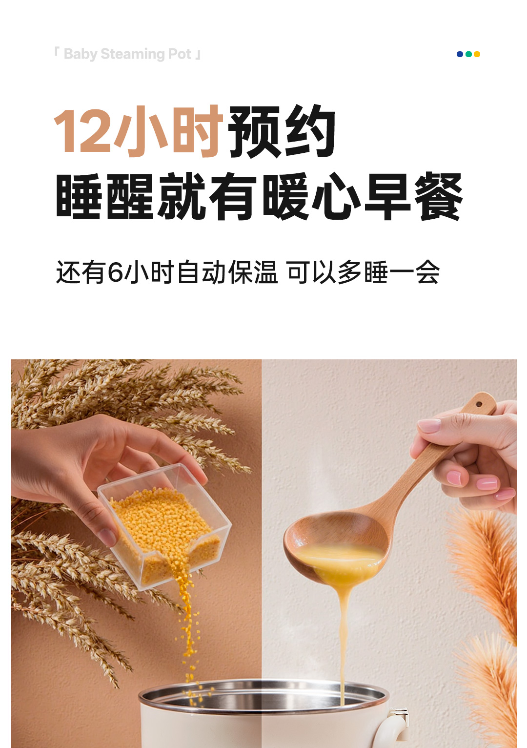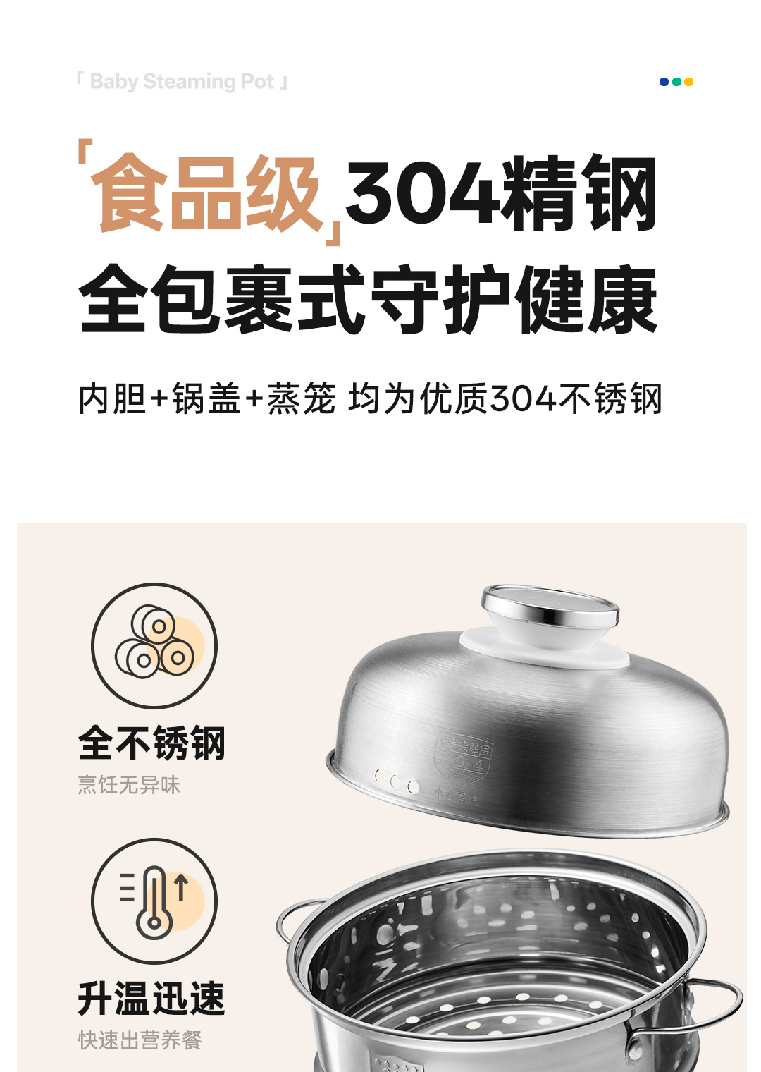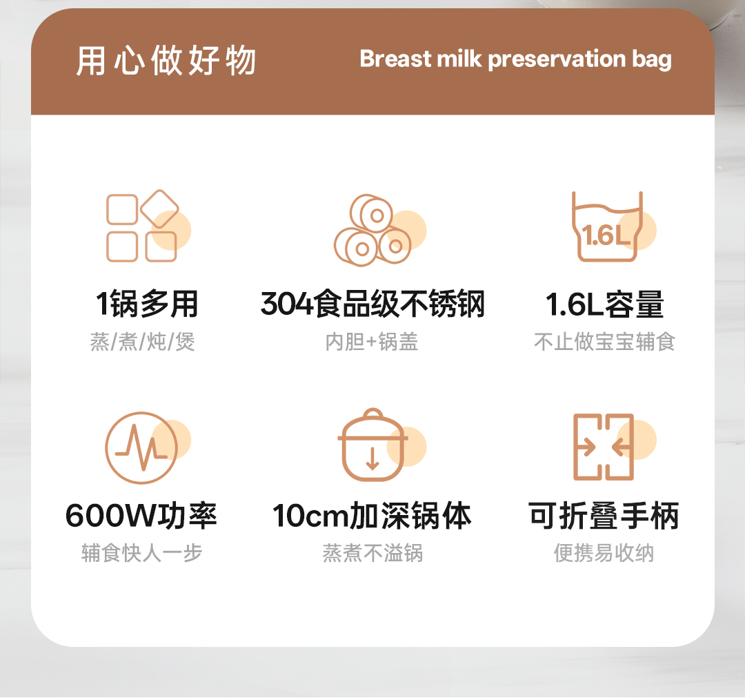 浦利顿婴儿辅食锅宝宝电炖锅煮粥锅BB煲煲汤熬粥1.6L家用宝宝蒸煮锅PLD-DZG-B600