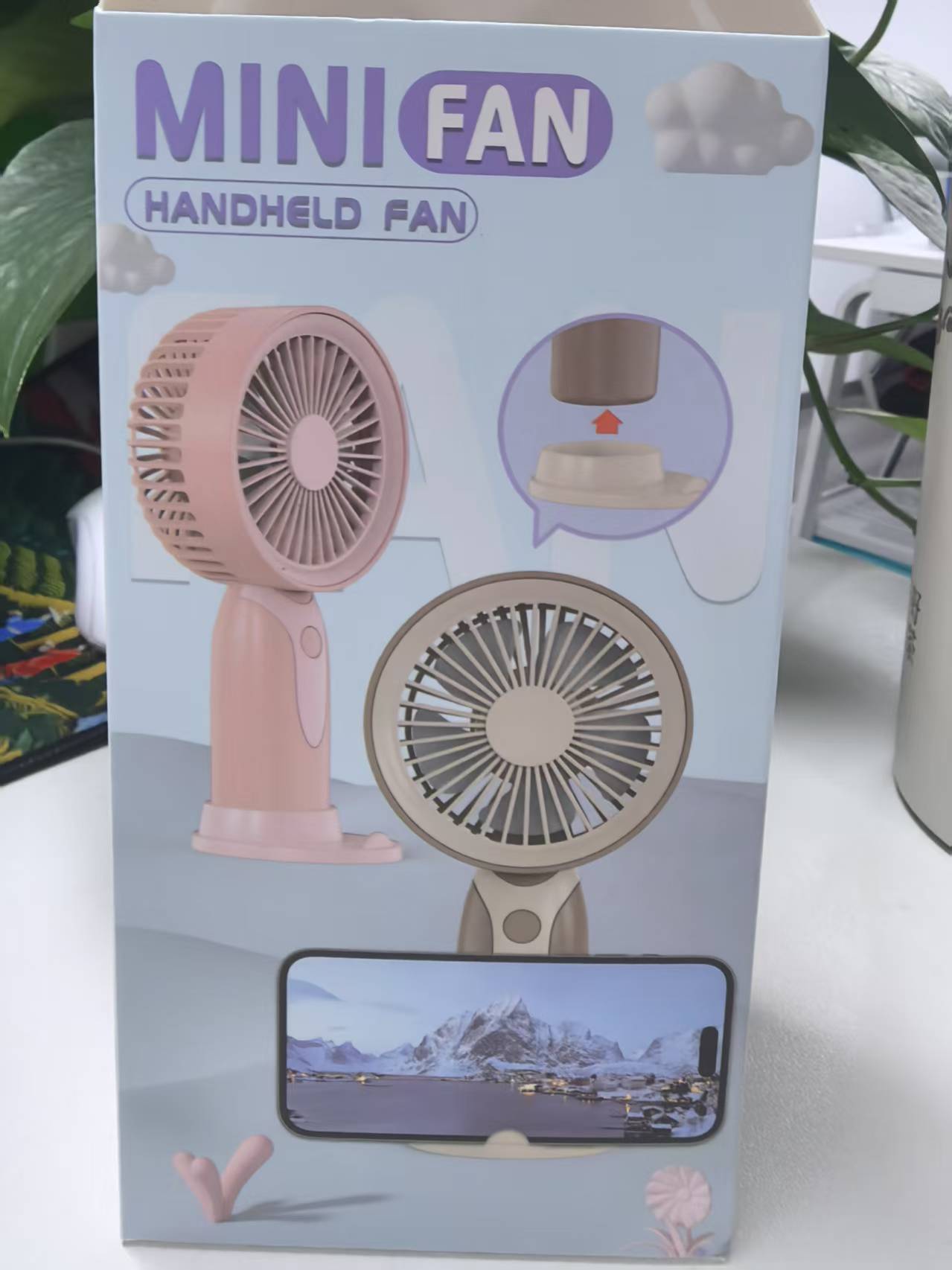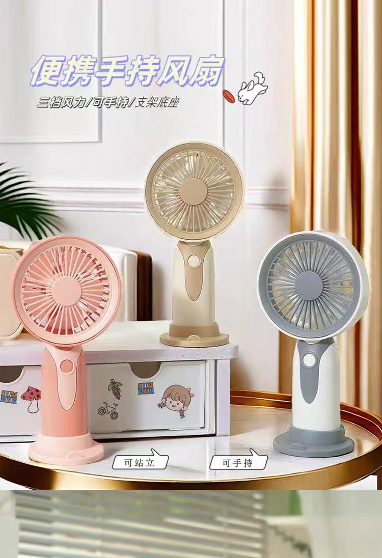 新款简约可拆卸锂电池手持小风扇三档调速