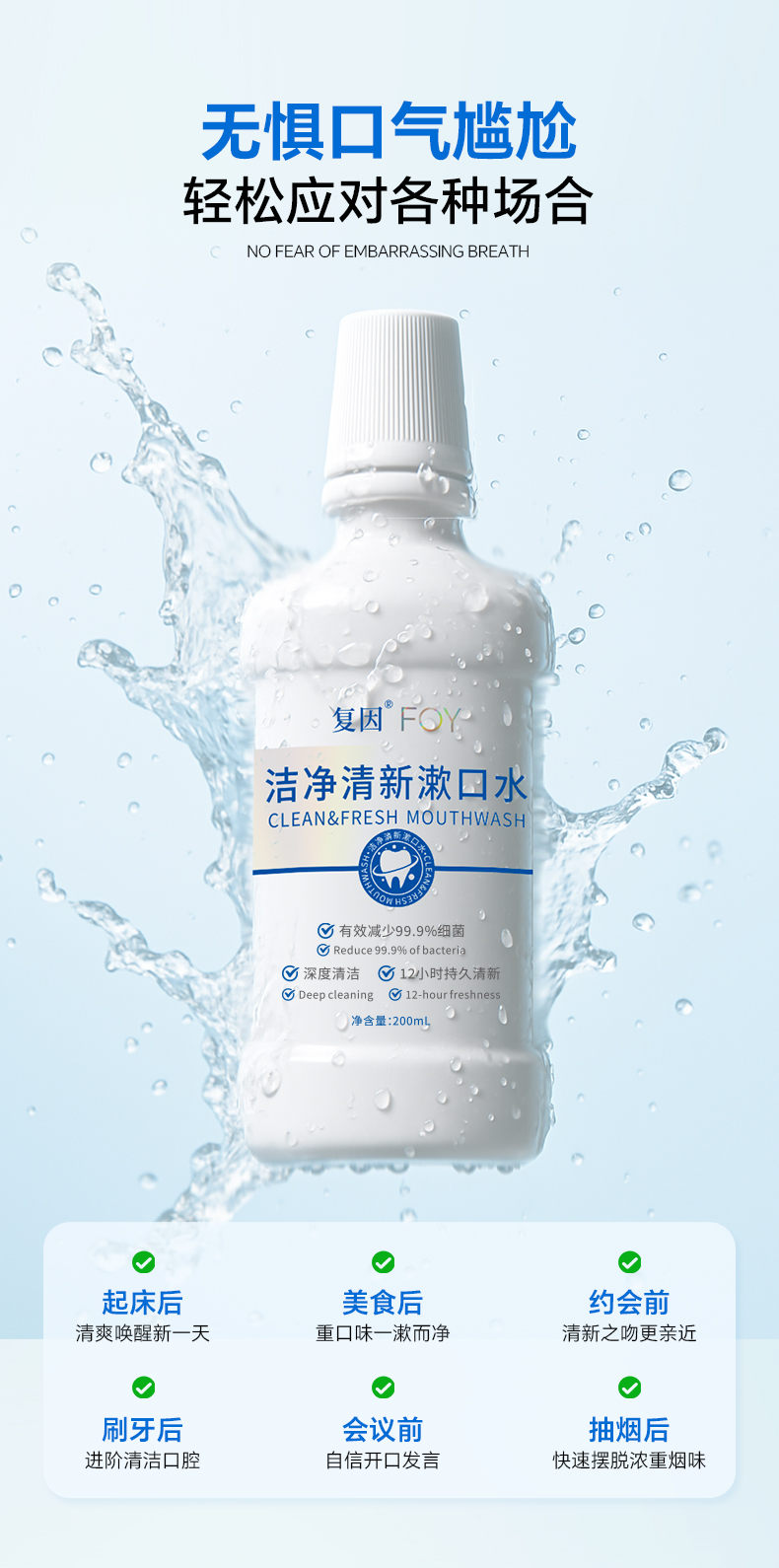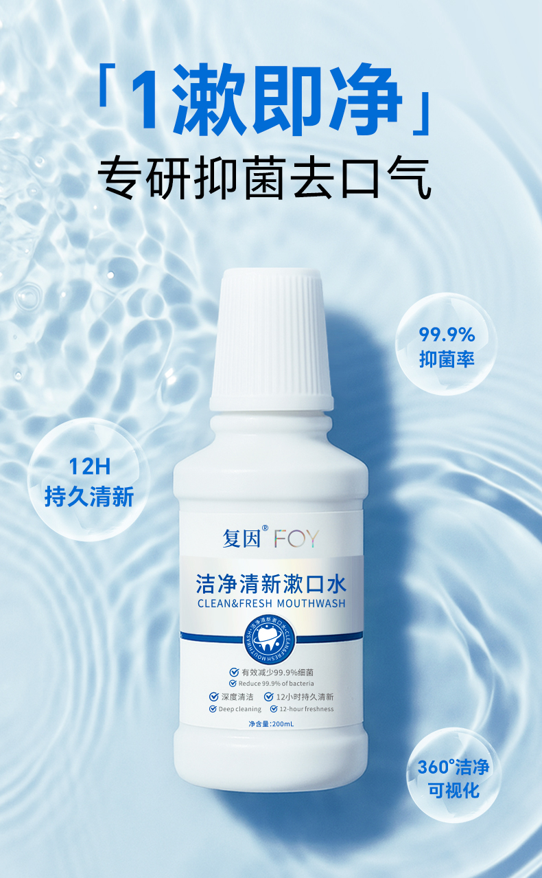 复因FOY 洁净清新漱口水 200ml 专研抑菌去口气 社交餐后刷牙后 适合每日使用