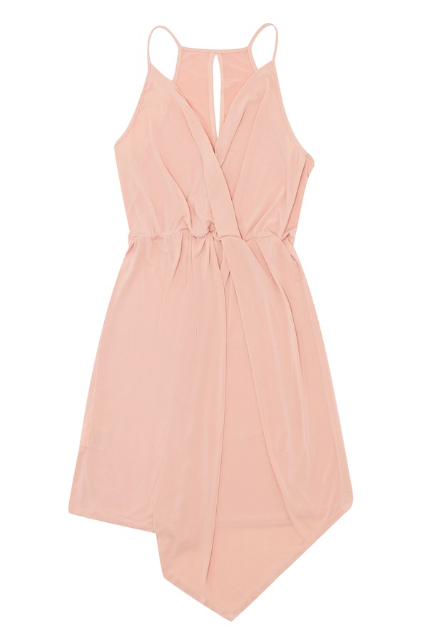 BCBGeneration 粉色垂坠围裹式吊带连衣裙 402