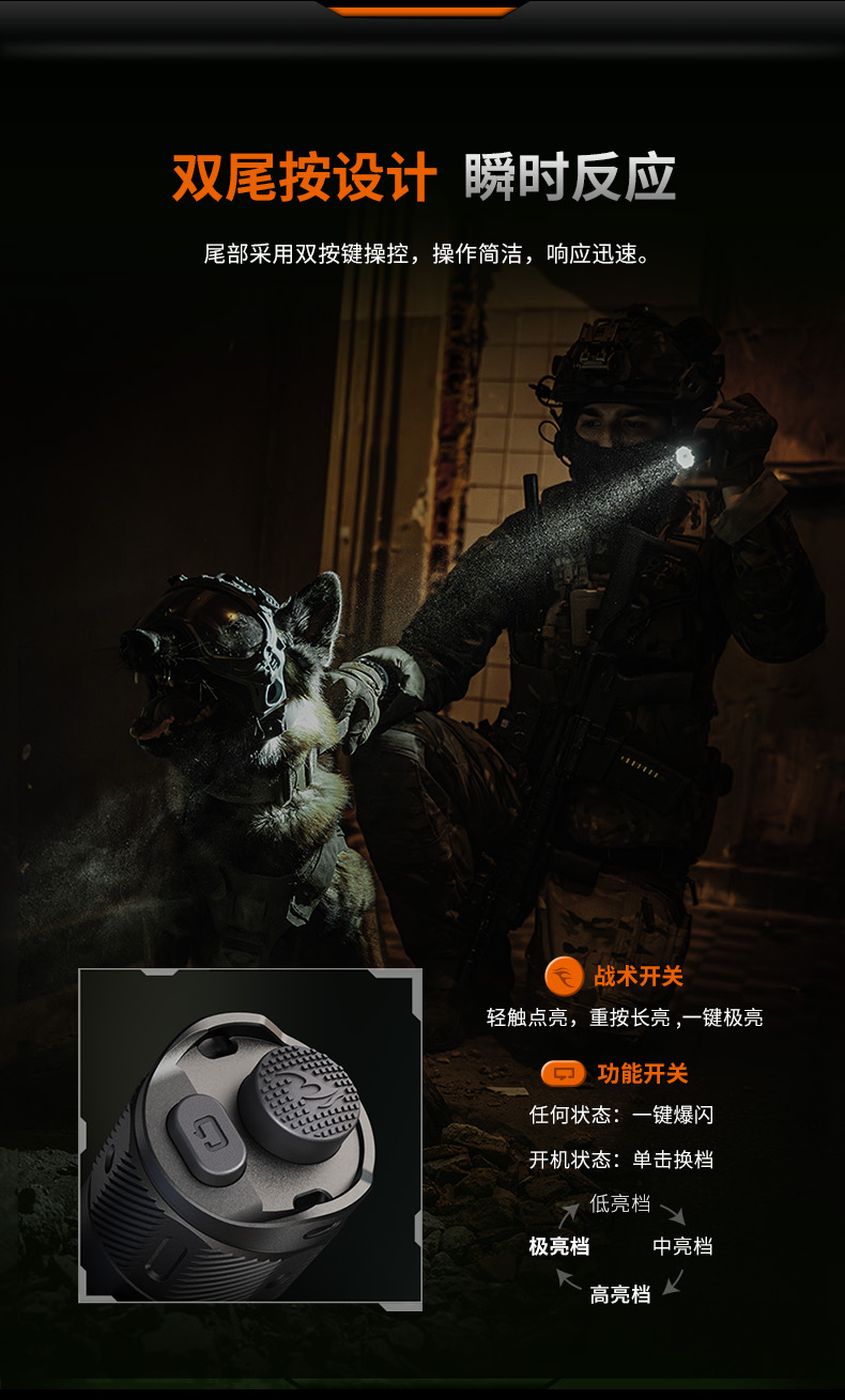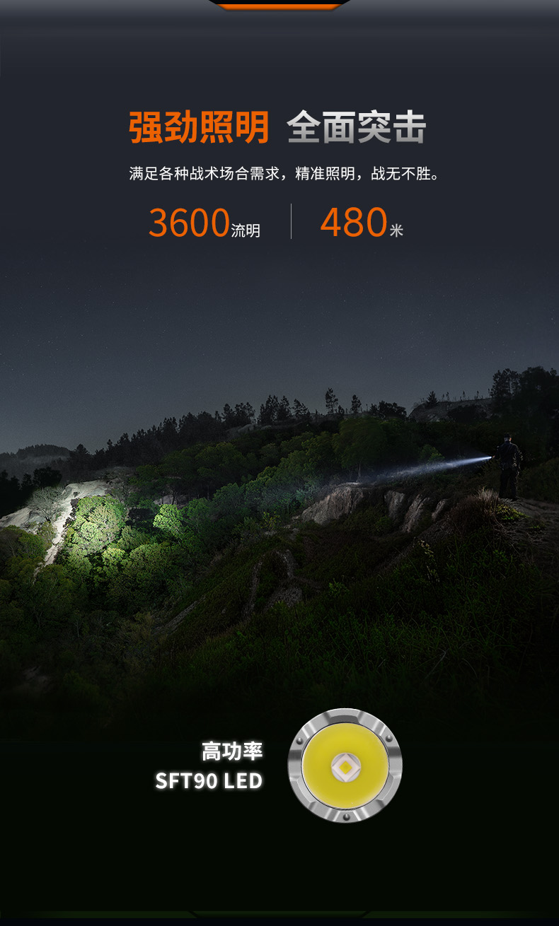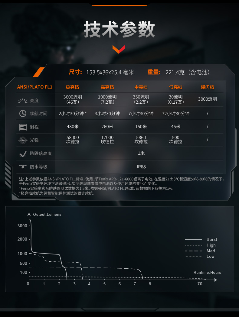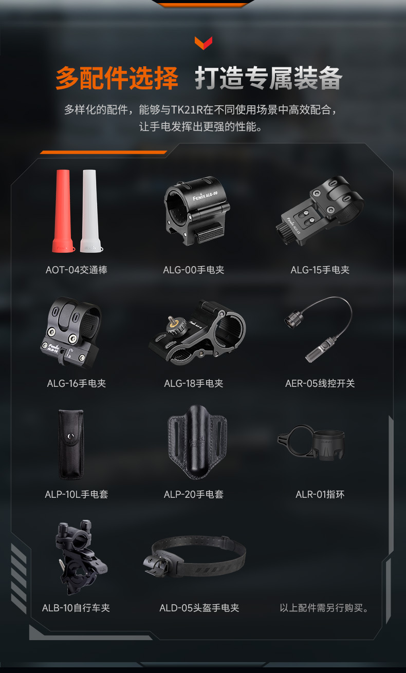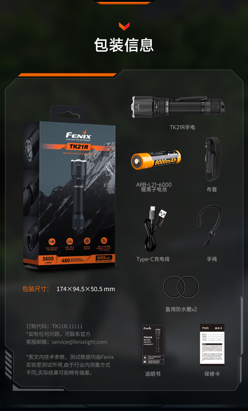 FENIX菲尼克斯战术手电TK21R强光3600流明一键爆闪极亮双尾按大容量电池