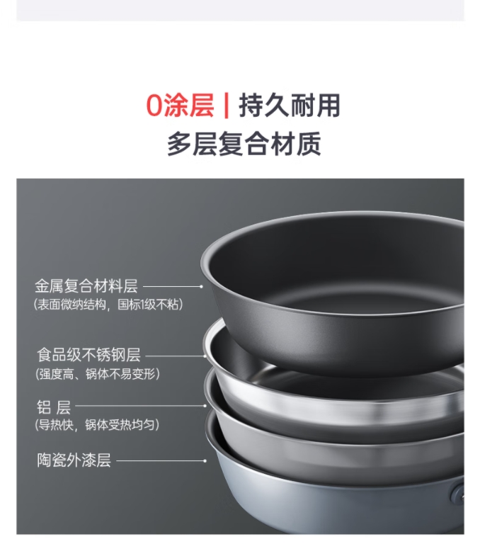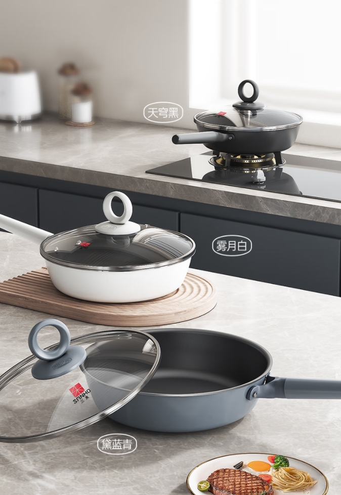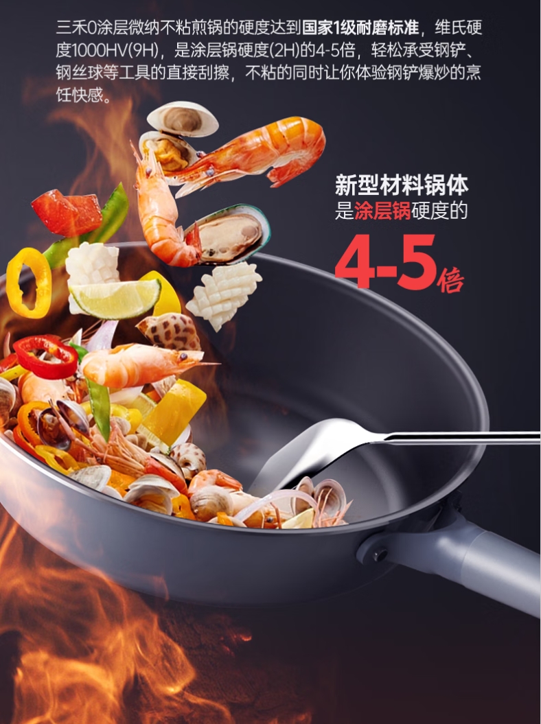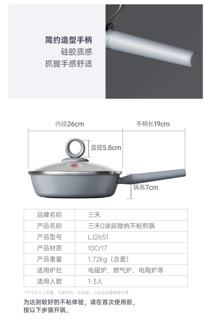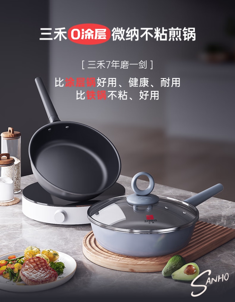 【0涂层煎锅/奶锅】三禾0涂层微纳不粘煎锅平底锅无涂层家用平底煎锅煎蛋锅