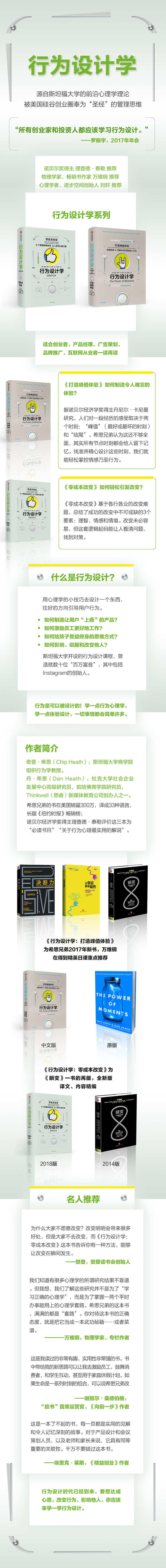 这是一本套路满满的书,里面有很多有趣、真实的故事。要知道,希思兄弟逻辑严密,技术含量和思维密集度非常高。如果他们两个研究“体验设计”,那基本上目前学术界所知道的,你能知道的,都在这里了。