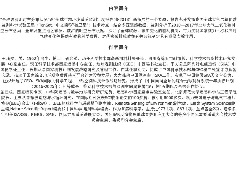《全球生态环境遥感监测2018年度报告——全球碳源汇时空分布状况》(王琦安,施建成,等)