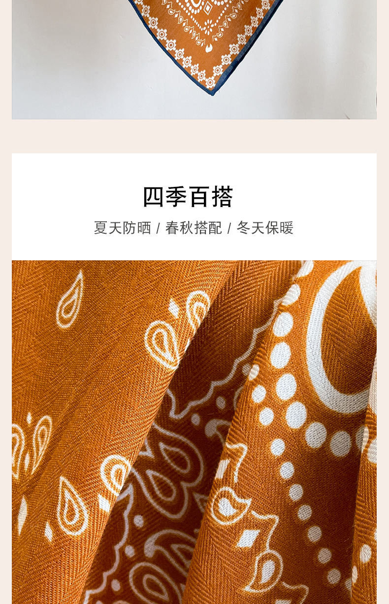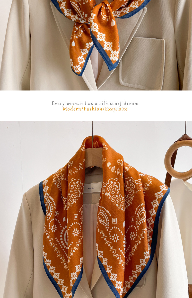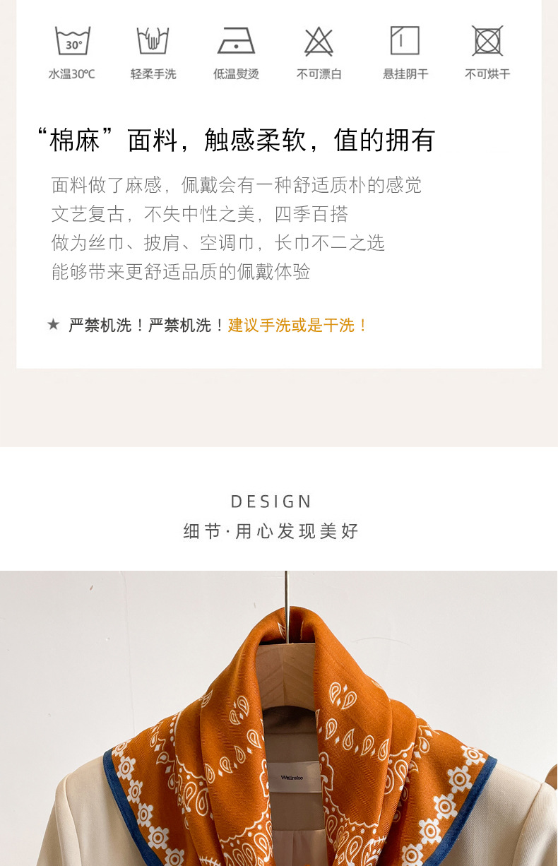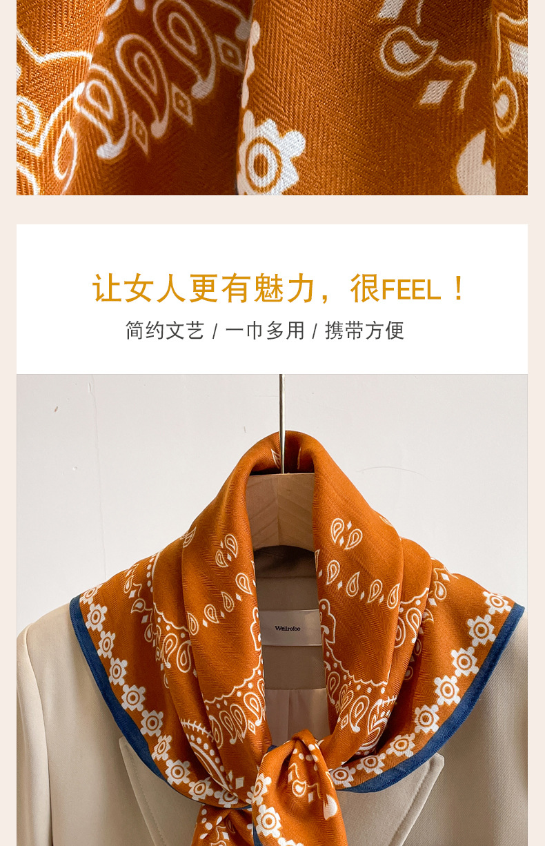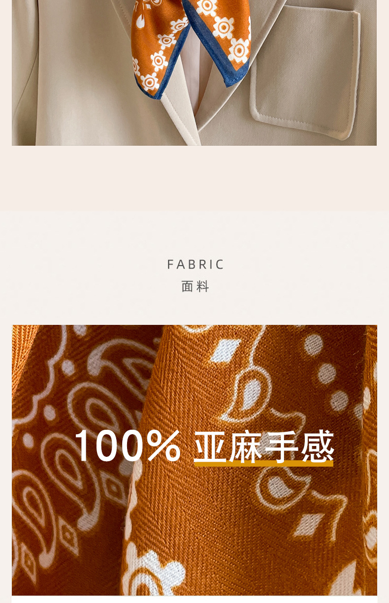 橙色腰果花棉麻发带丝巾70小方巾女薄款围巾领巾亚麻头巾百搭衬衫