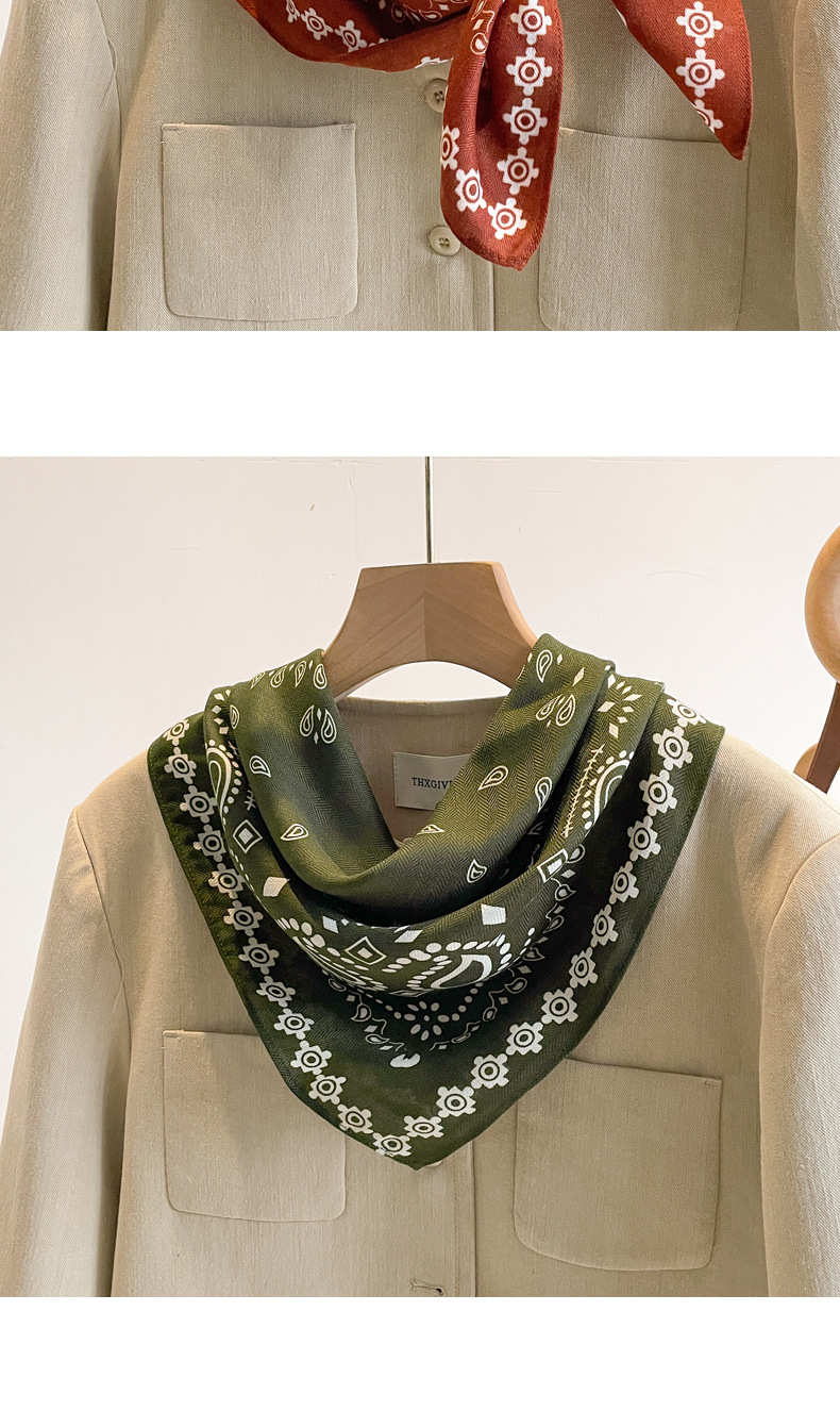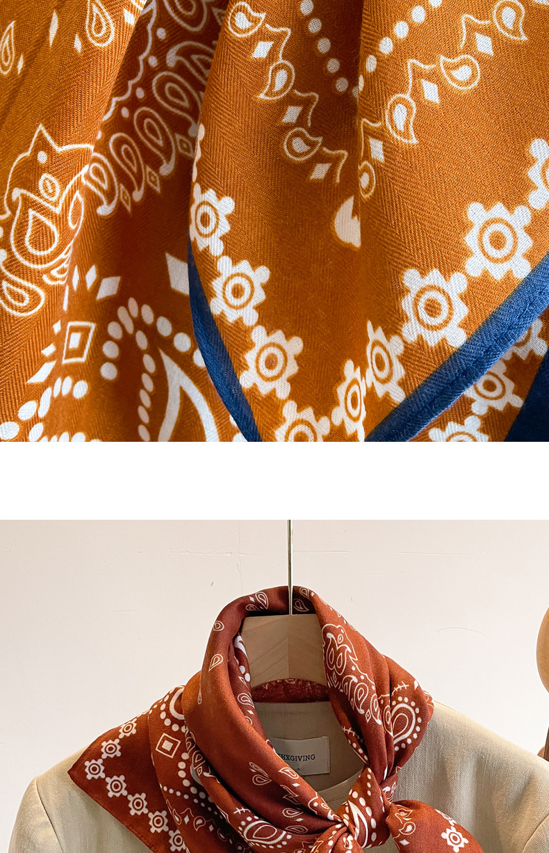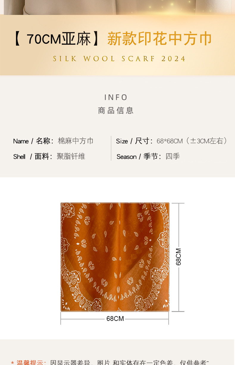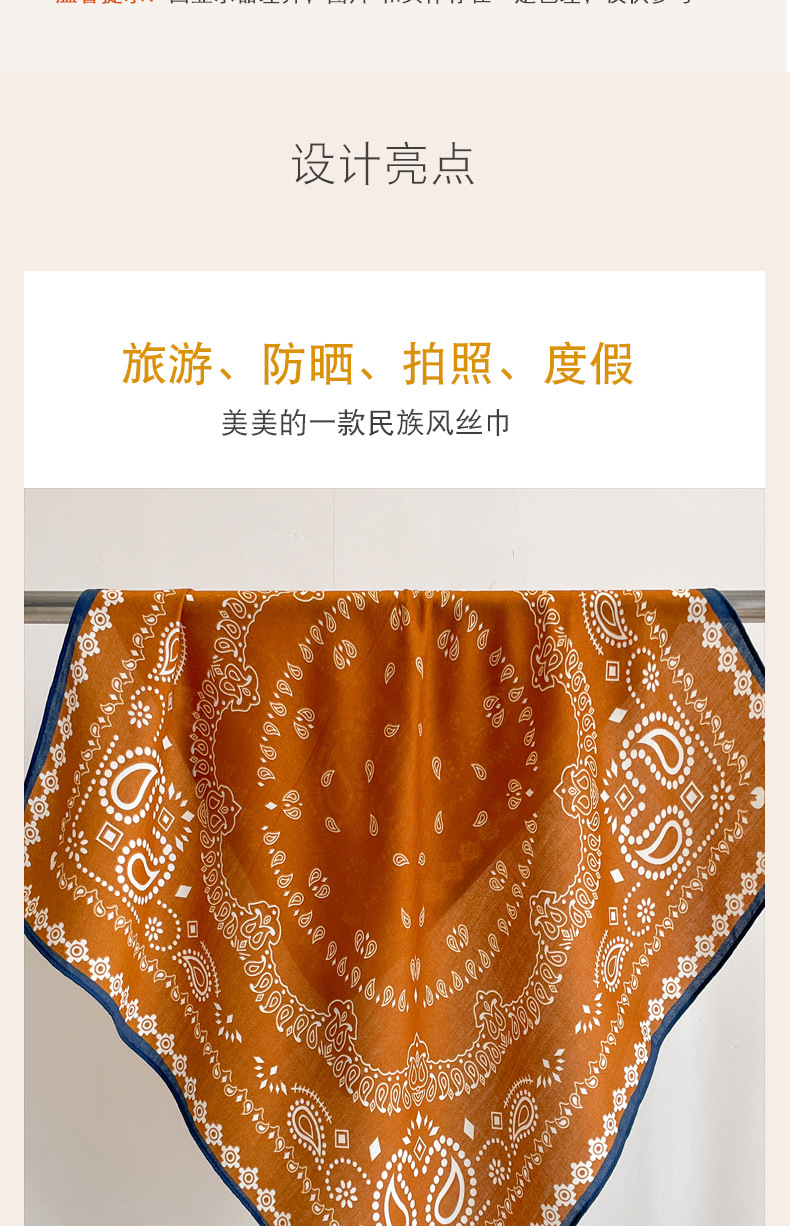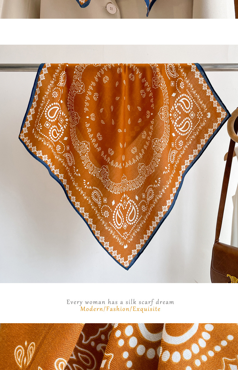 橙色腰果花棉麻发带丝巾70小方巾女薄款围巾领巾亚麻头巾百搭衬衫