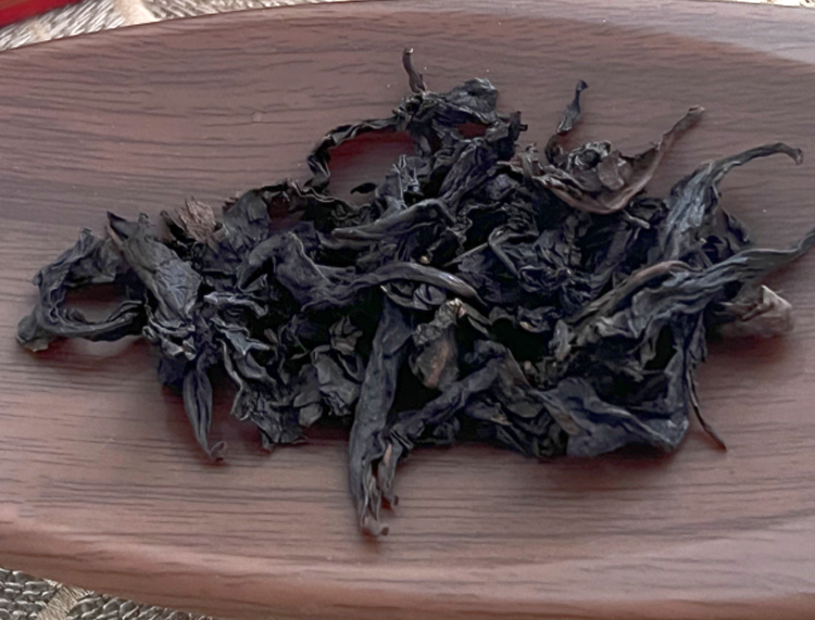 干茶,条索纤秀紧结、色泽褐润带点金芒,干茶的香气就闻到特殊的松脂香和桂圆干香。