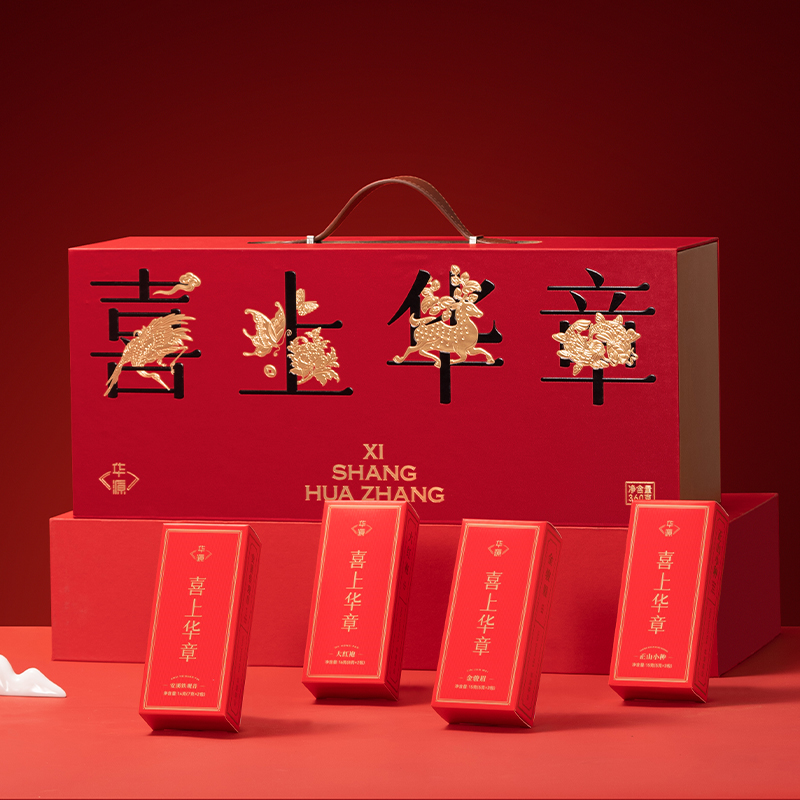 今天掌柜推荐给你的,便是这份满满中国传统节日喜庆感的——喜上华章茶礼礼盒。