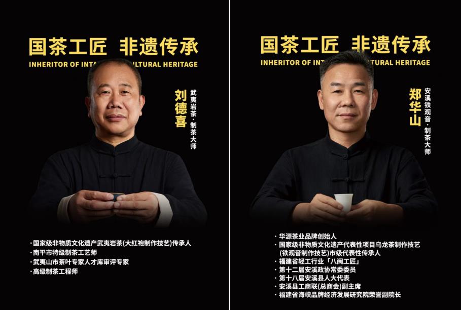 这款礼盒分别是由国家非遗技艺(铁观音制作技艺)市级代表性传承人郑华山、大红袍制作技艺市级代表传承人郑德喜两位老师监制。