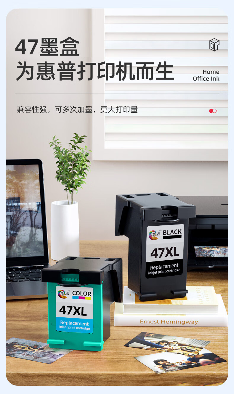 绘威47黑色墨盒 适用惠普HP DeskJet Ink Advantage Ultra 4825 4826 4877 4828 4829打印机墨盒墨水