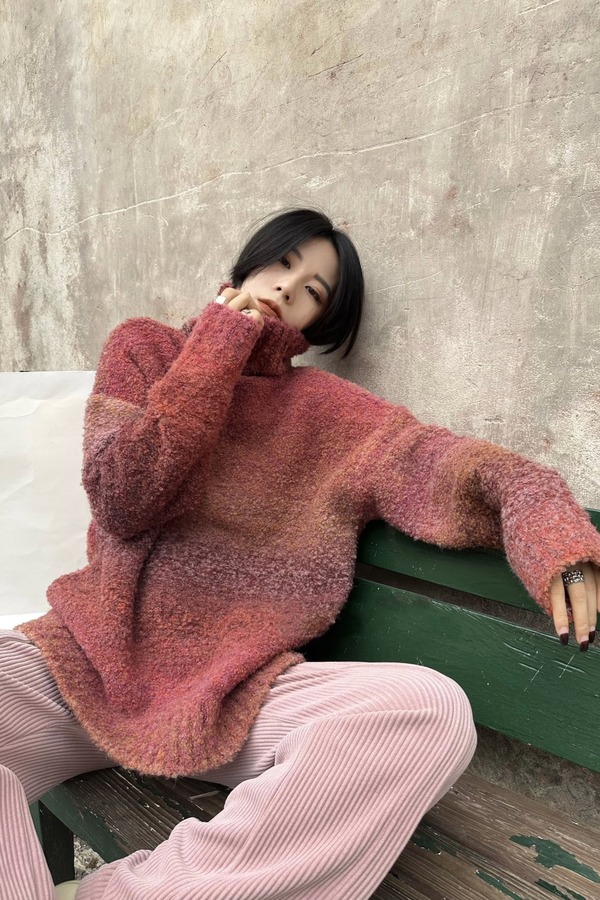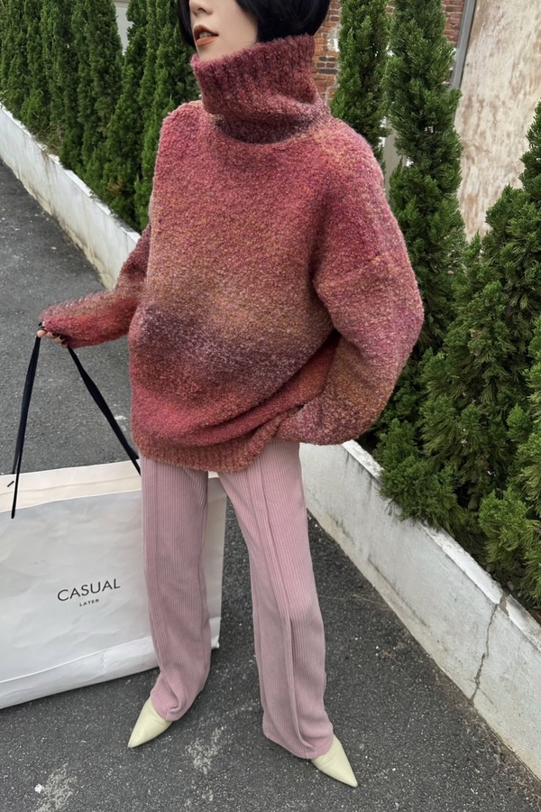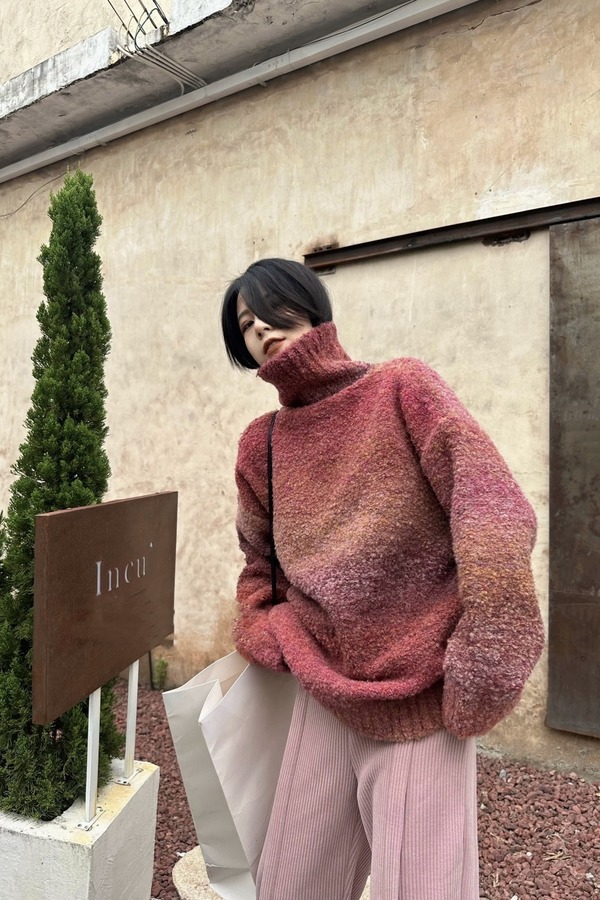 ANSUABEL 加厚渐变高领中长款毛衣 17806