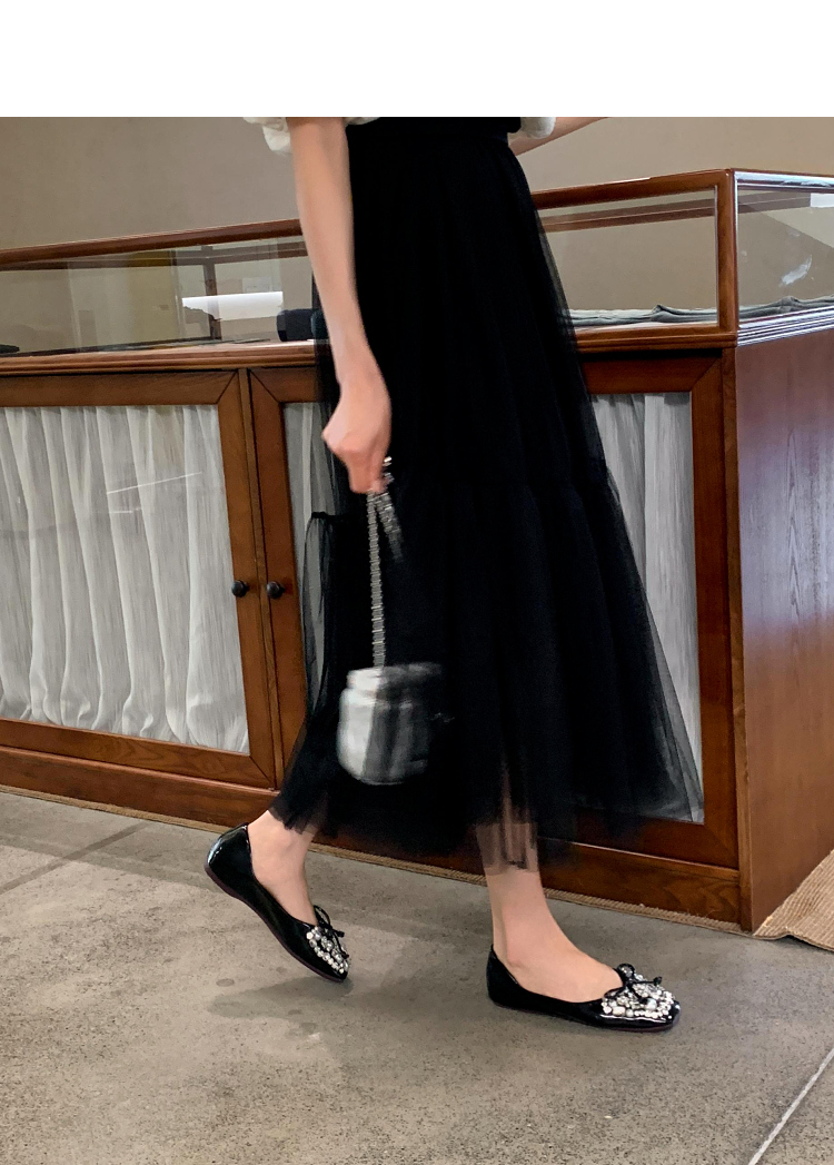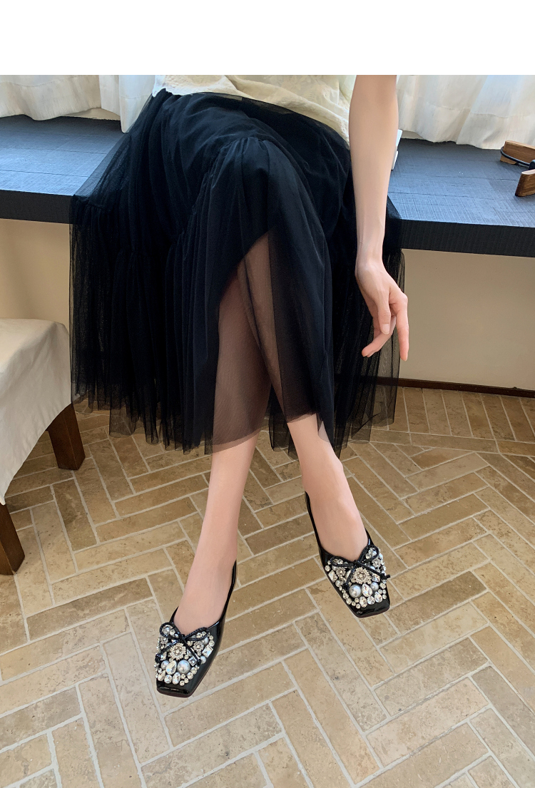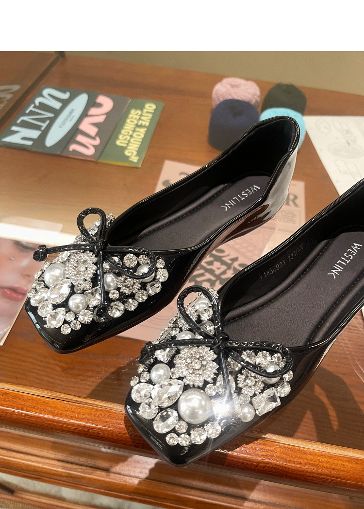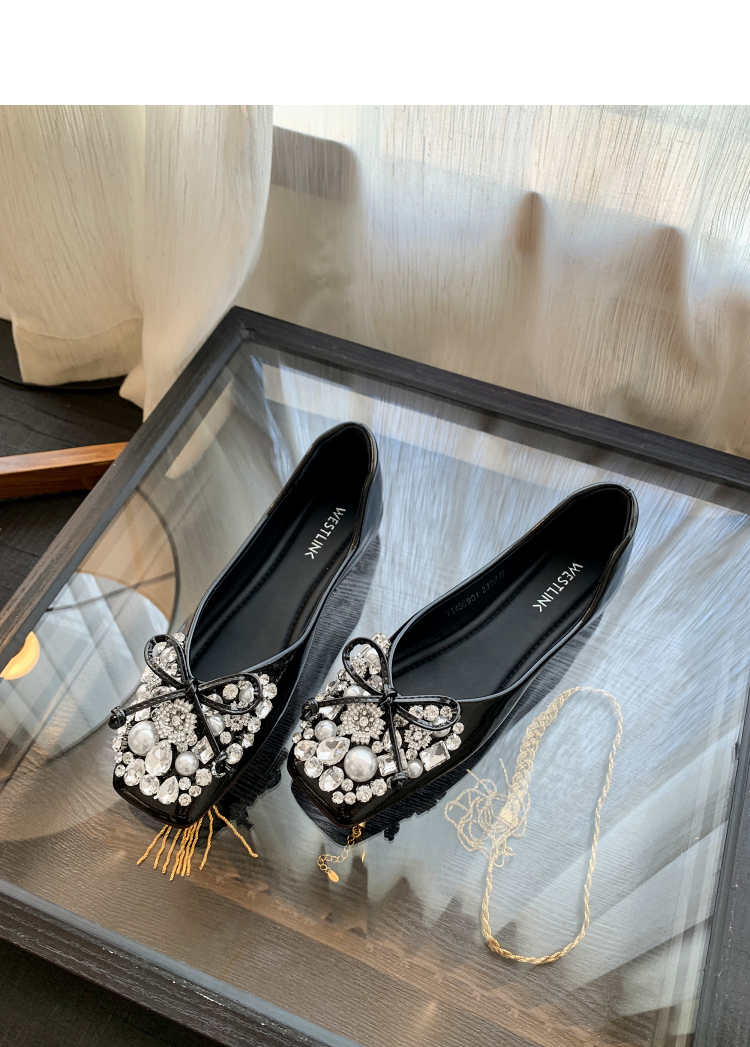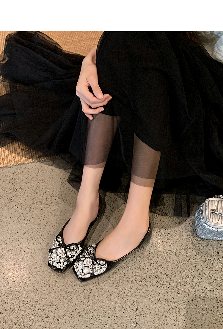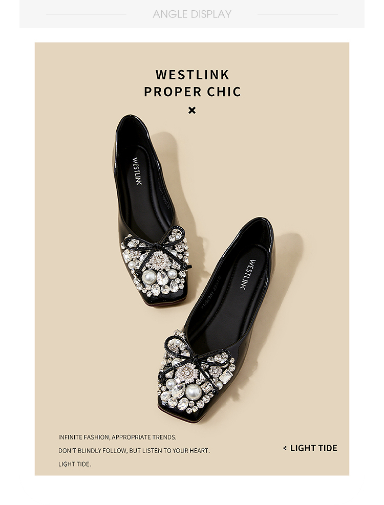 西遇水钻浅口单鞋女新款秋季绝美蝴蝶结瓢鞋软底银色平底鞋V1456901