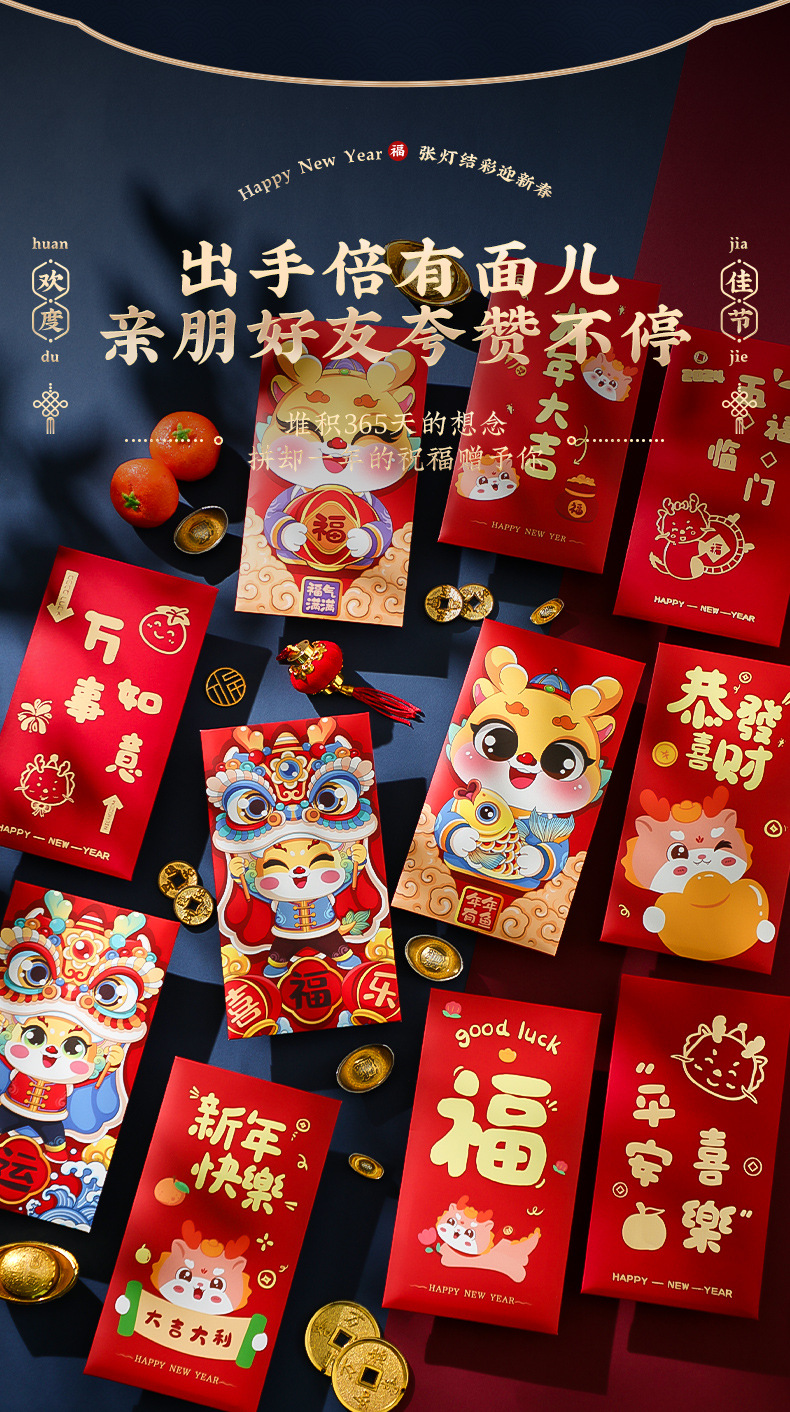 「6个装!数套可选」2024龙年新款过年红包袋 新年春节儿童卡通千元压岁居家日用通用红包利是封