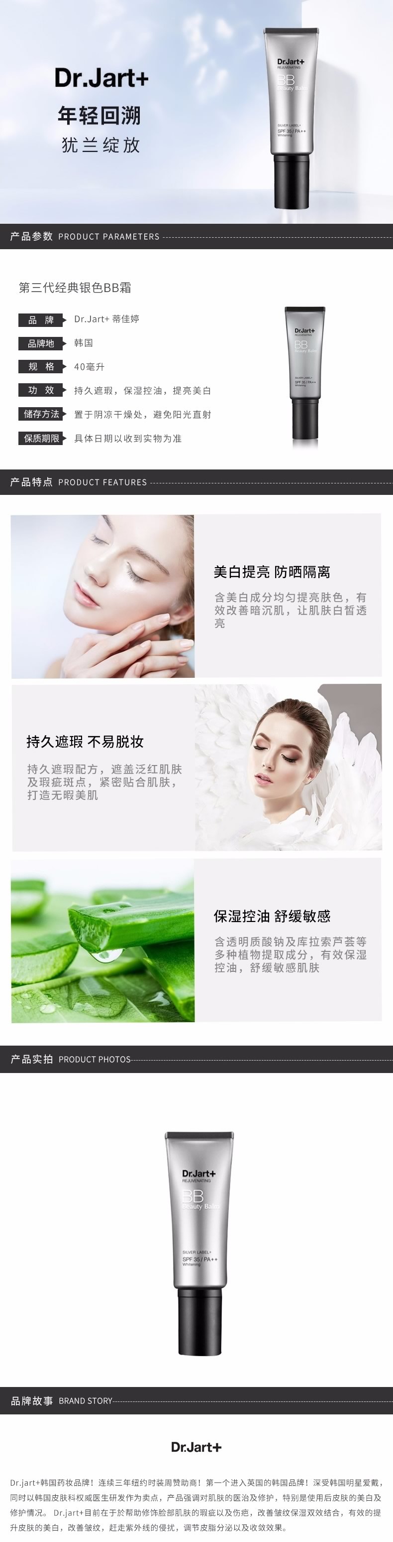 DR.JART+-蒂佳婷 银色BB霜 控油持久提亮防晒遮瑕 40ml 韩国