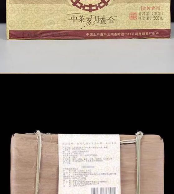 中粮-中茶2018年岁月黄金砖500克 古树黄片 熟茶砖 云南普洱茶熟茶/云南干仓直发