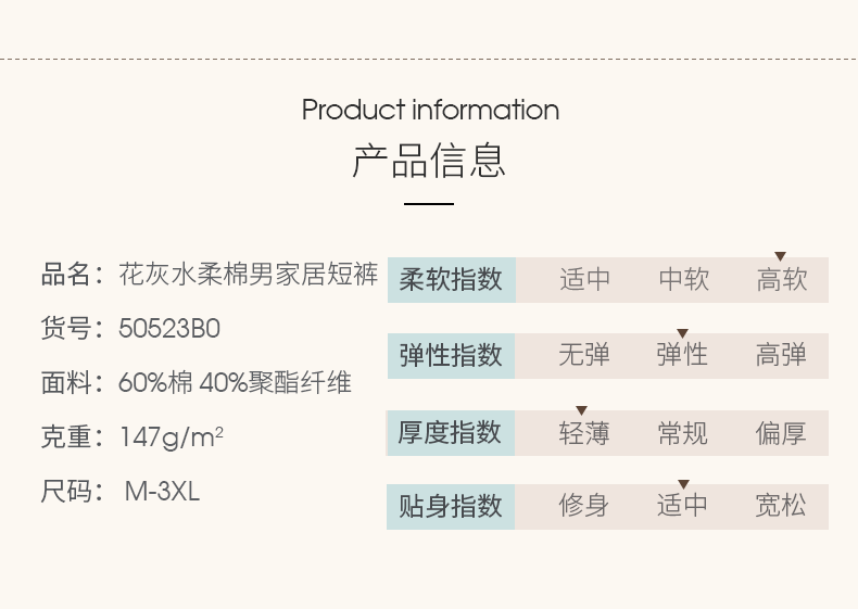 花灰水柔棉男家居短裤GB202650523B 【A43】