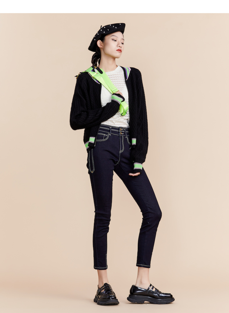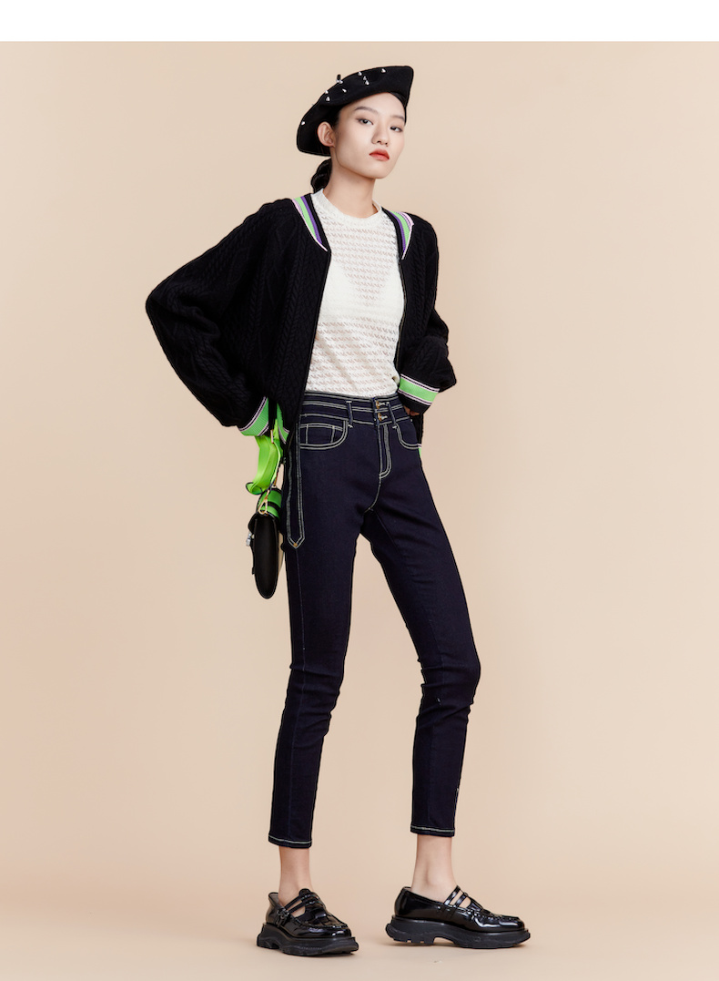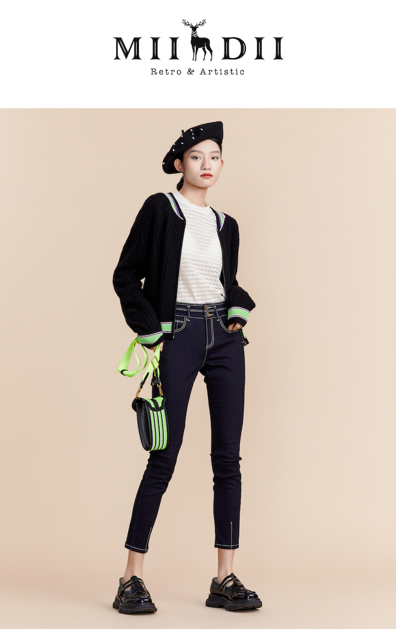 MIIDII谜底2022春新款简约时尚洗水紧身牛仔裤小脚裤女221MK0157