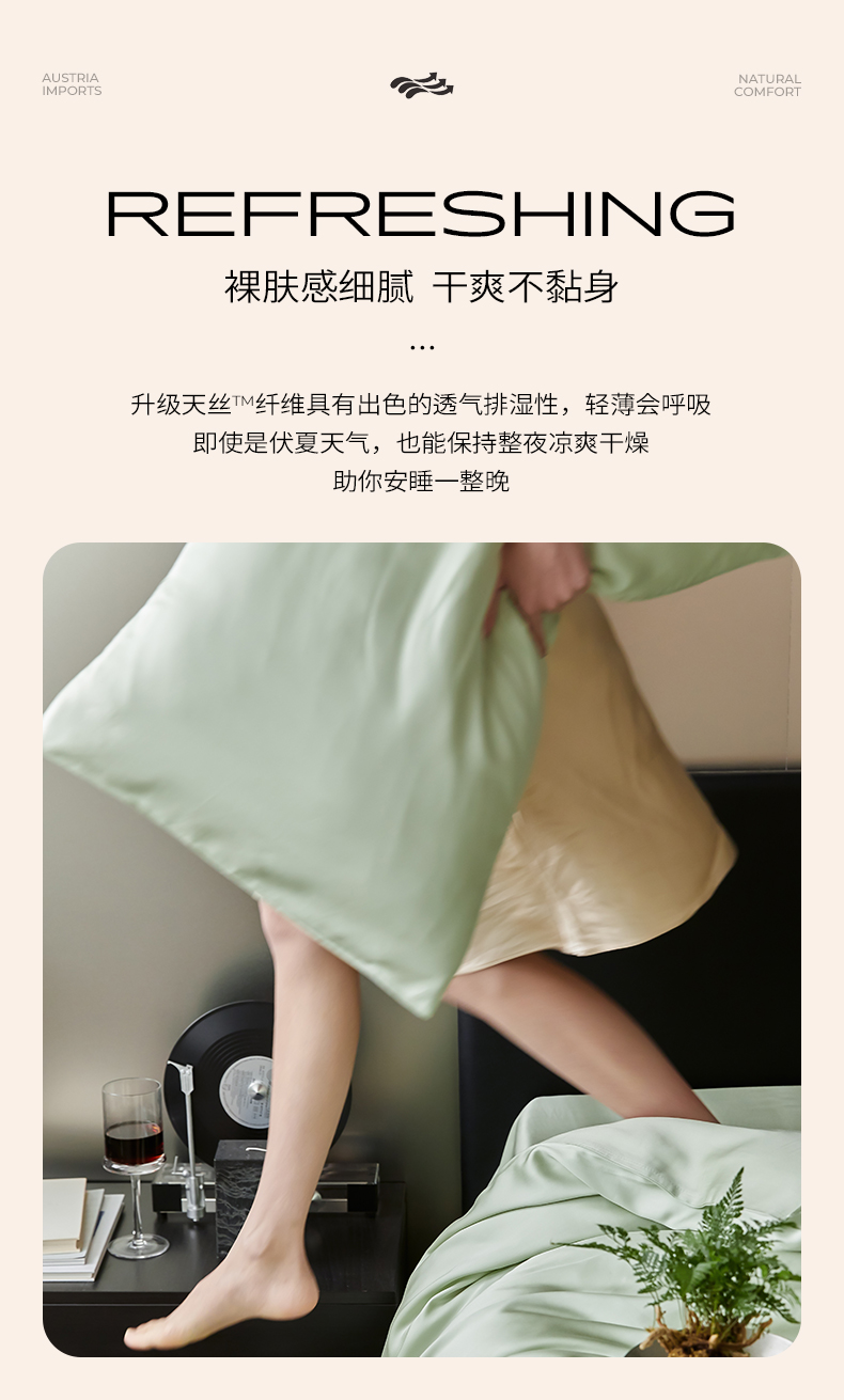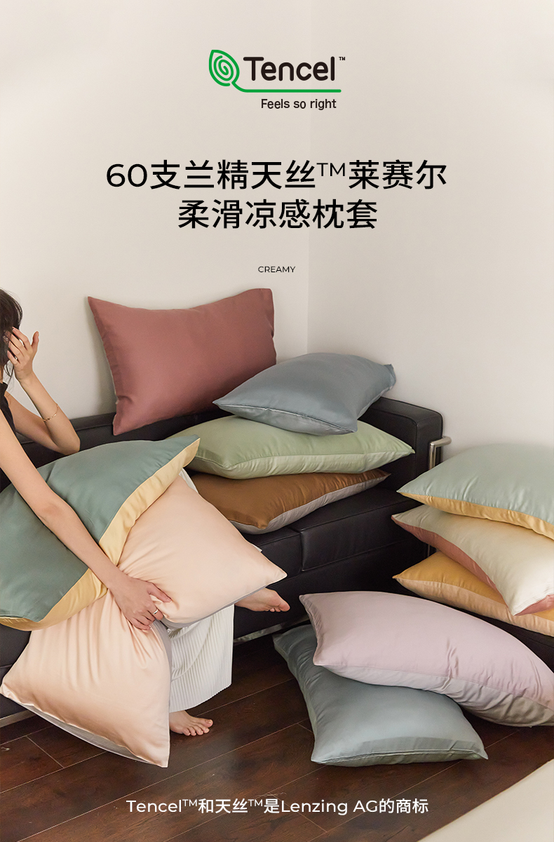 自然醒60支兰精天丝纯色双拼单品枕套HS