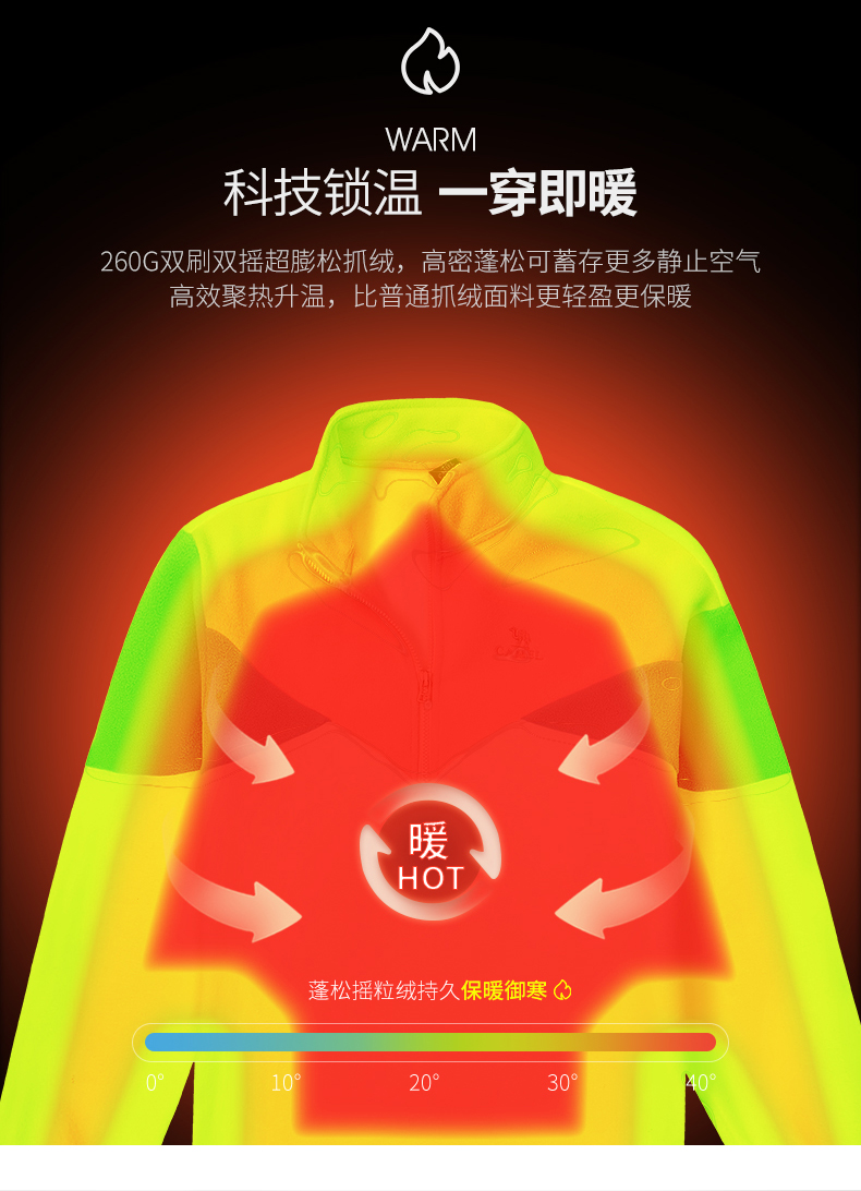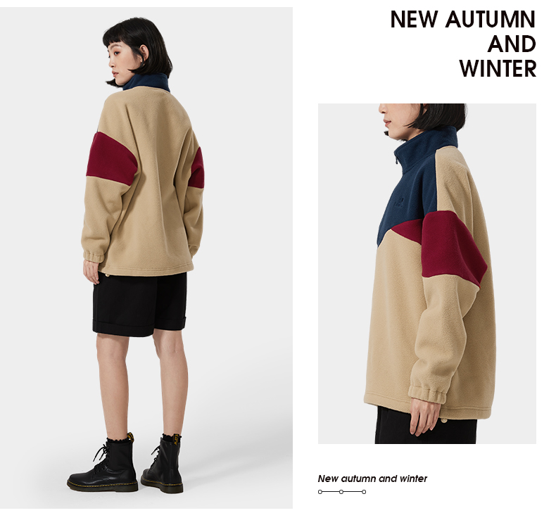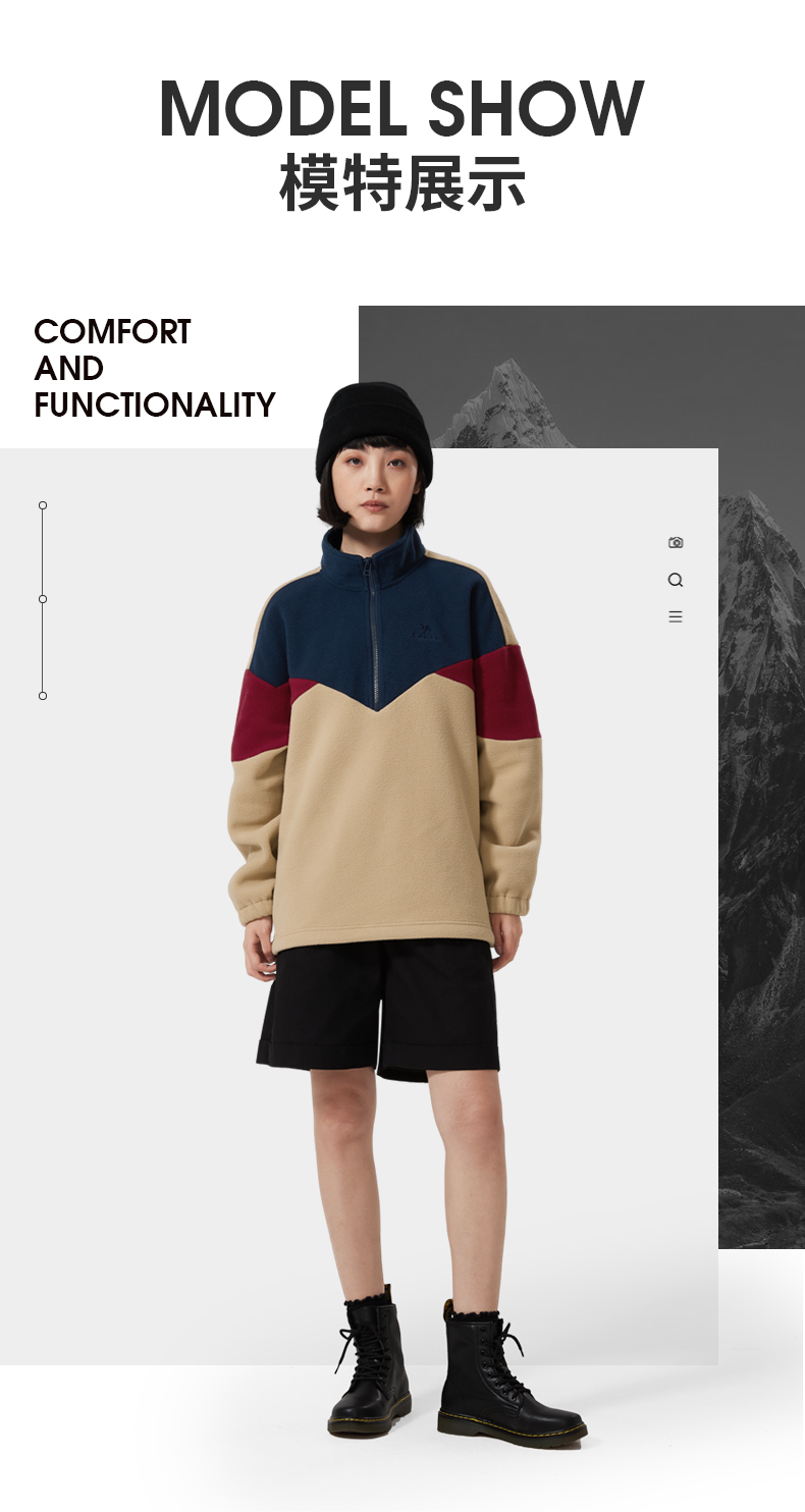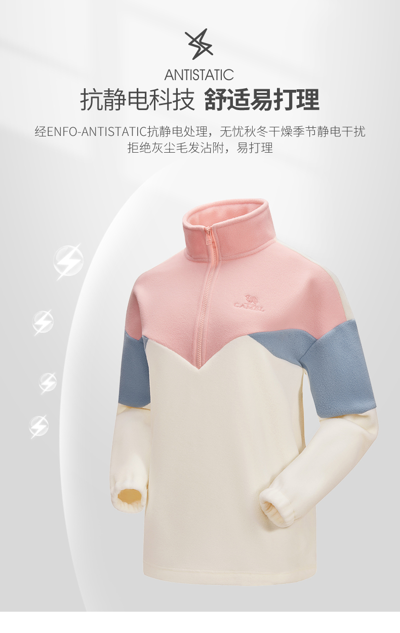 CAMEL骆驼户外女半开胸抓绒衣2022春秋摇粒绒内胆卫衣颗粒绒外套 AA32263618