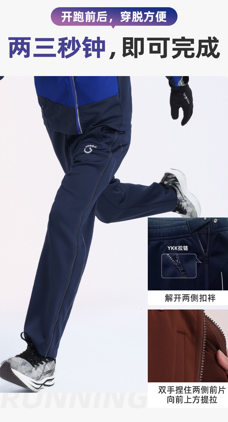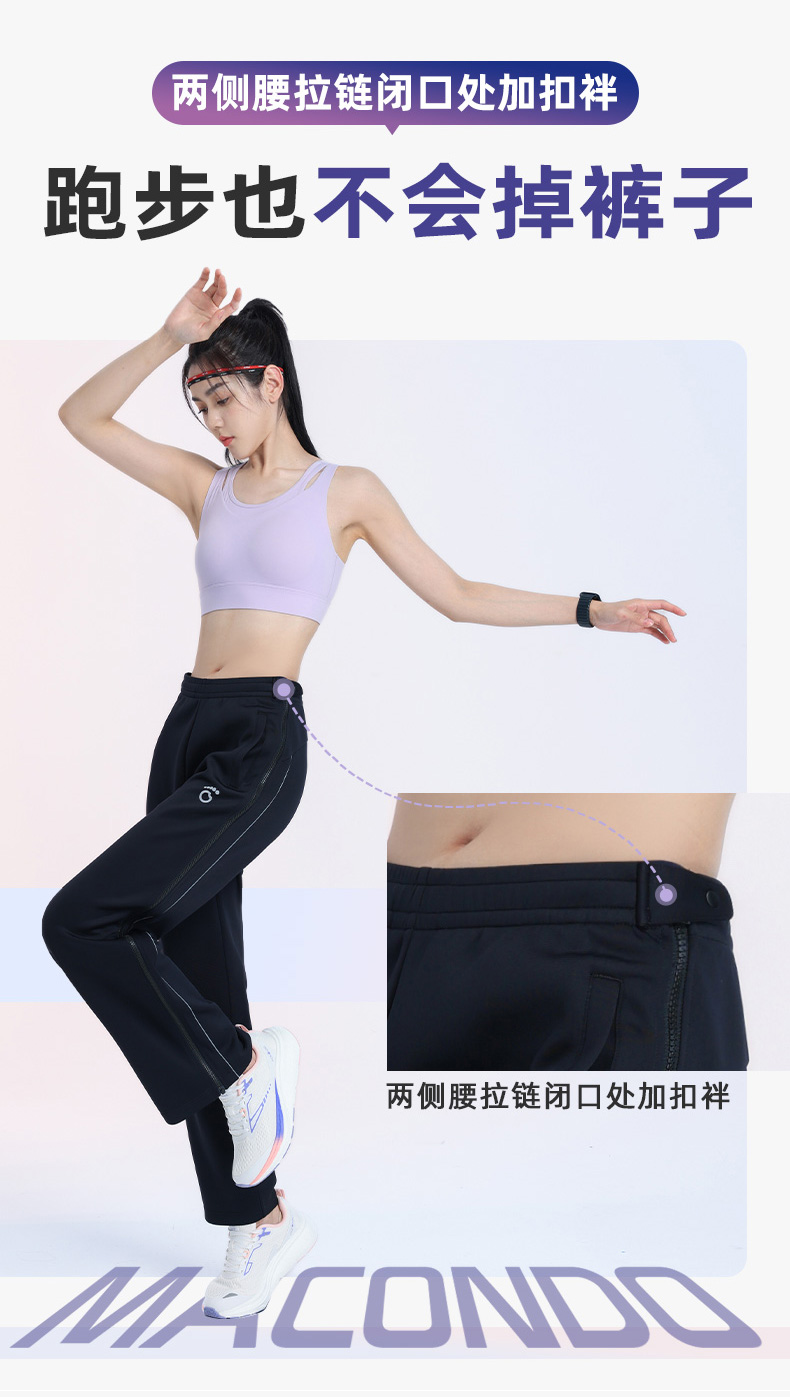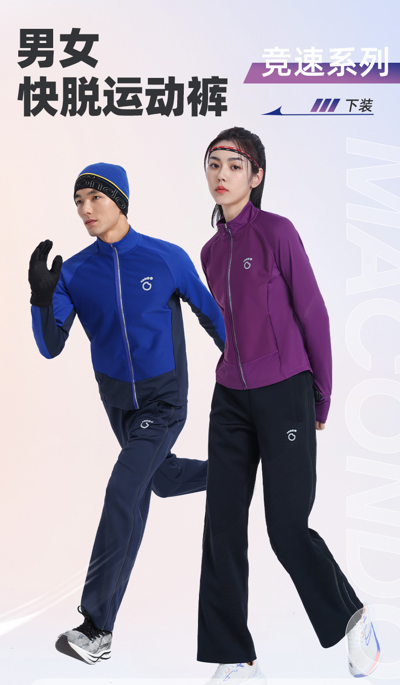 2023马孔多男女快脱运动裤 吸湿速干 双侧拉链 扣袢 侧边反光长条显腿长 跑前热身穿 快脱快穿