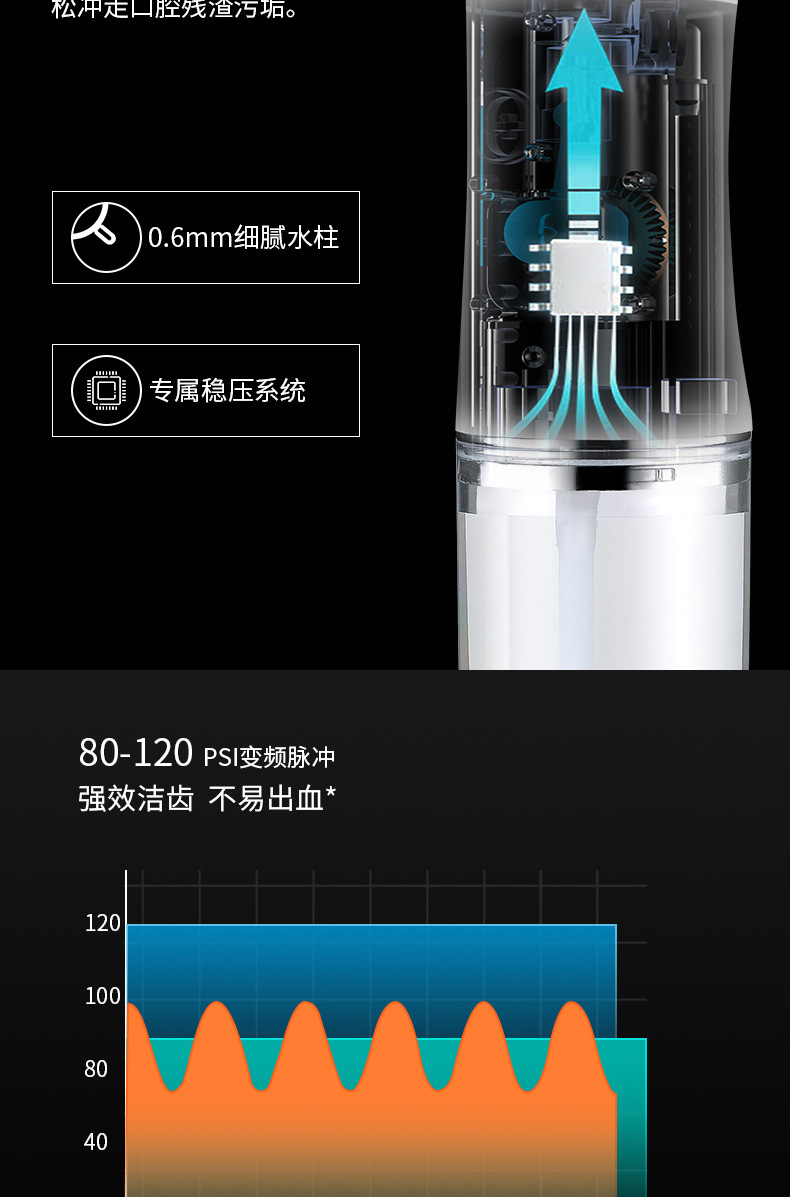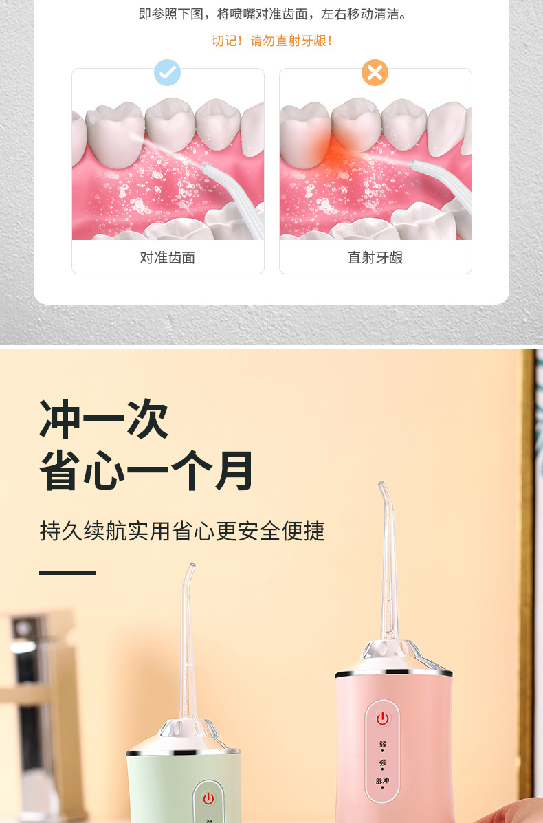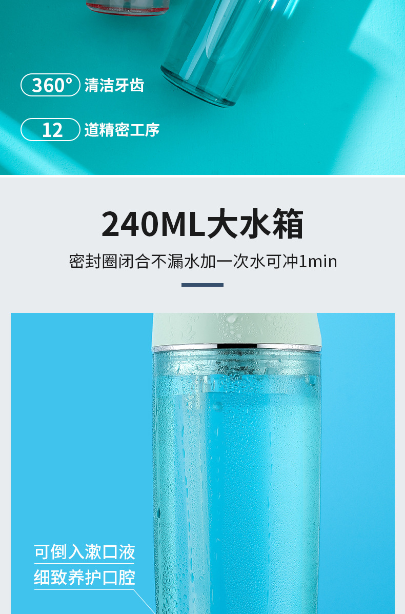 青果青橙便携式电动洗牙冲牙器(三色可选)多挡模式调节 IPX7级防水 全方位清洁口腔