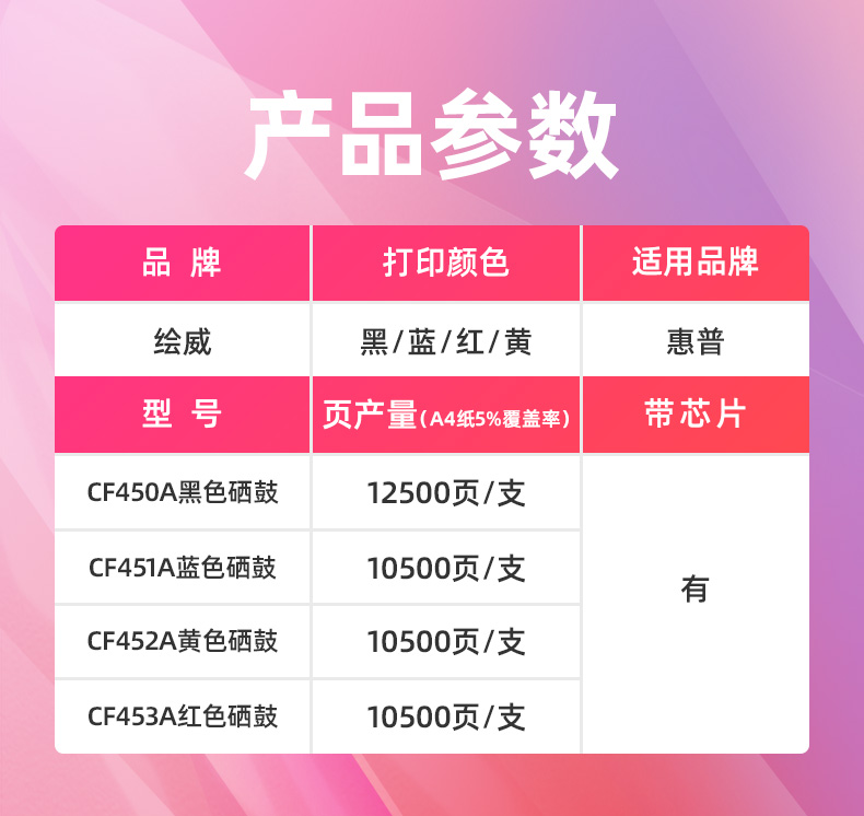 绘威CF450a硒鼓 适用惠普m652硒鼓 m653dn打印机墨盒 m681f m653x m682z m681dh m681z m652dn粉盒 四色套装