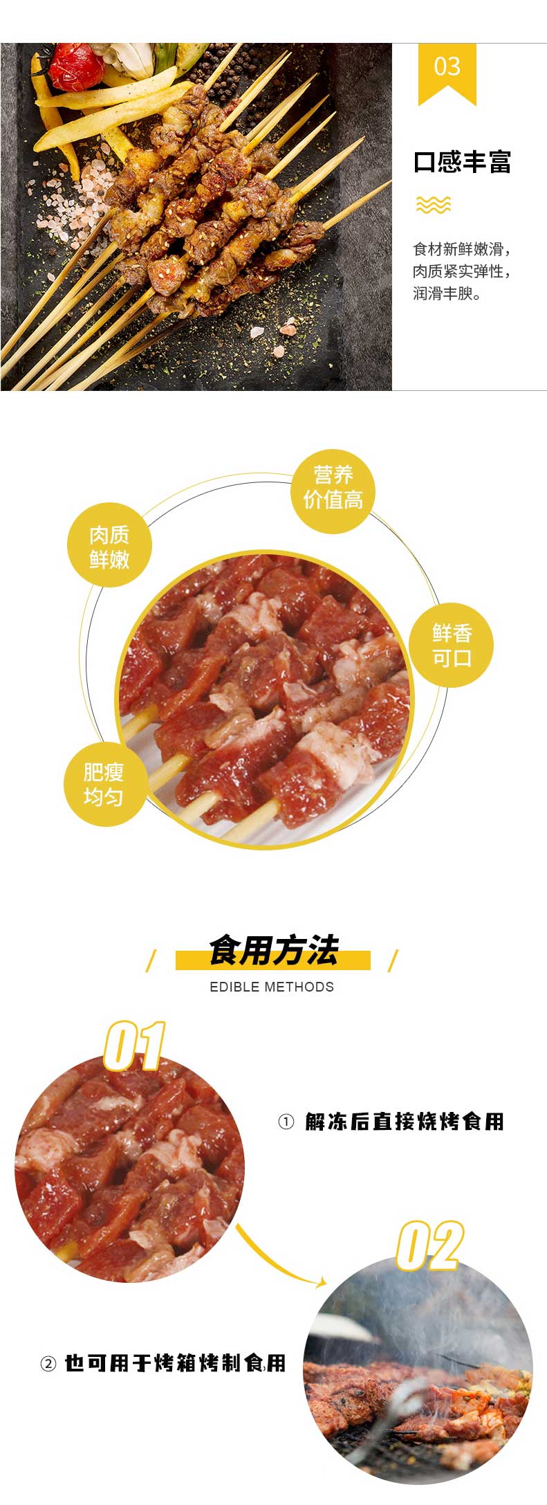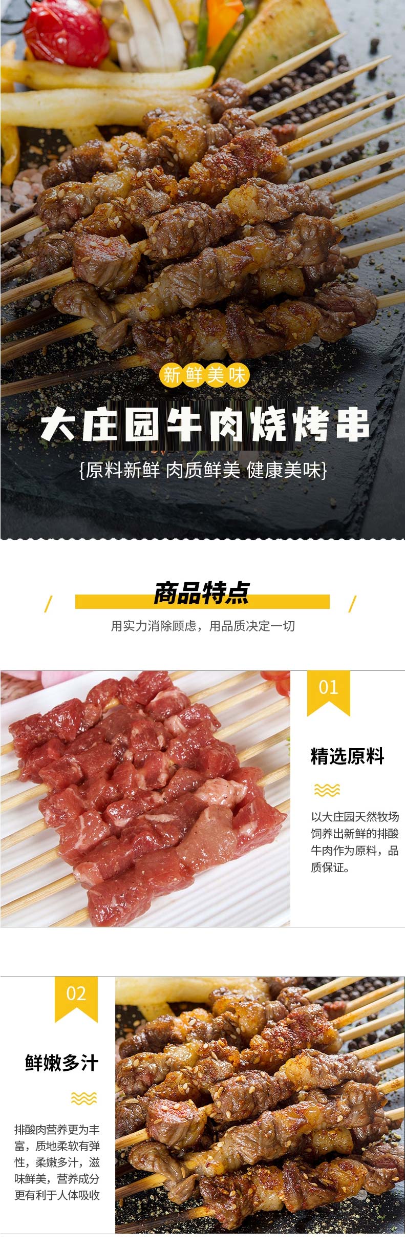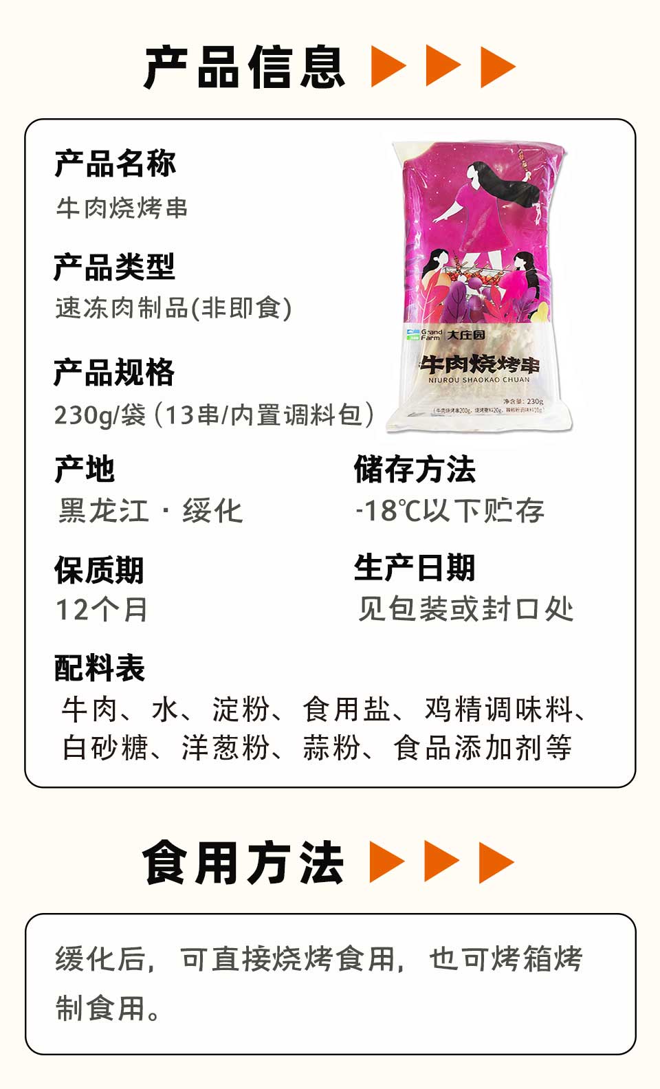 大庄园牛肉烧烤串 净含量:230g/袋(13串)18g/串 20袋/件 (内置烧烤撒料20g、辣椒粉10g)