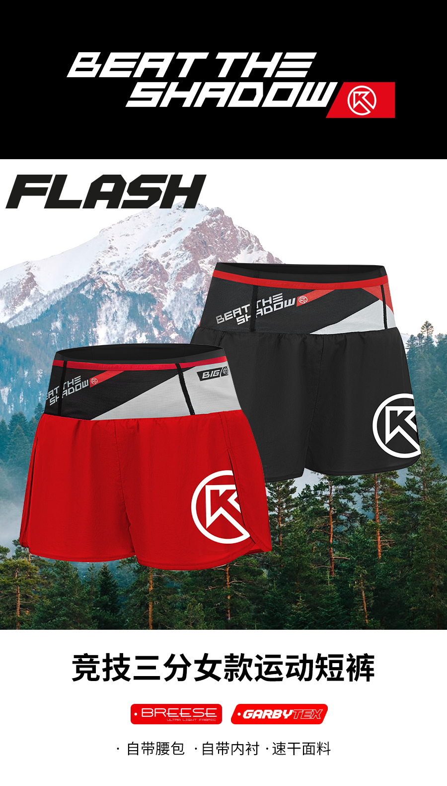 BigK 大K FLASH 女款竞技运动短裤 城市路跑 户外越野