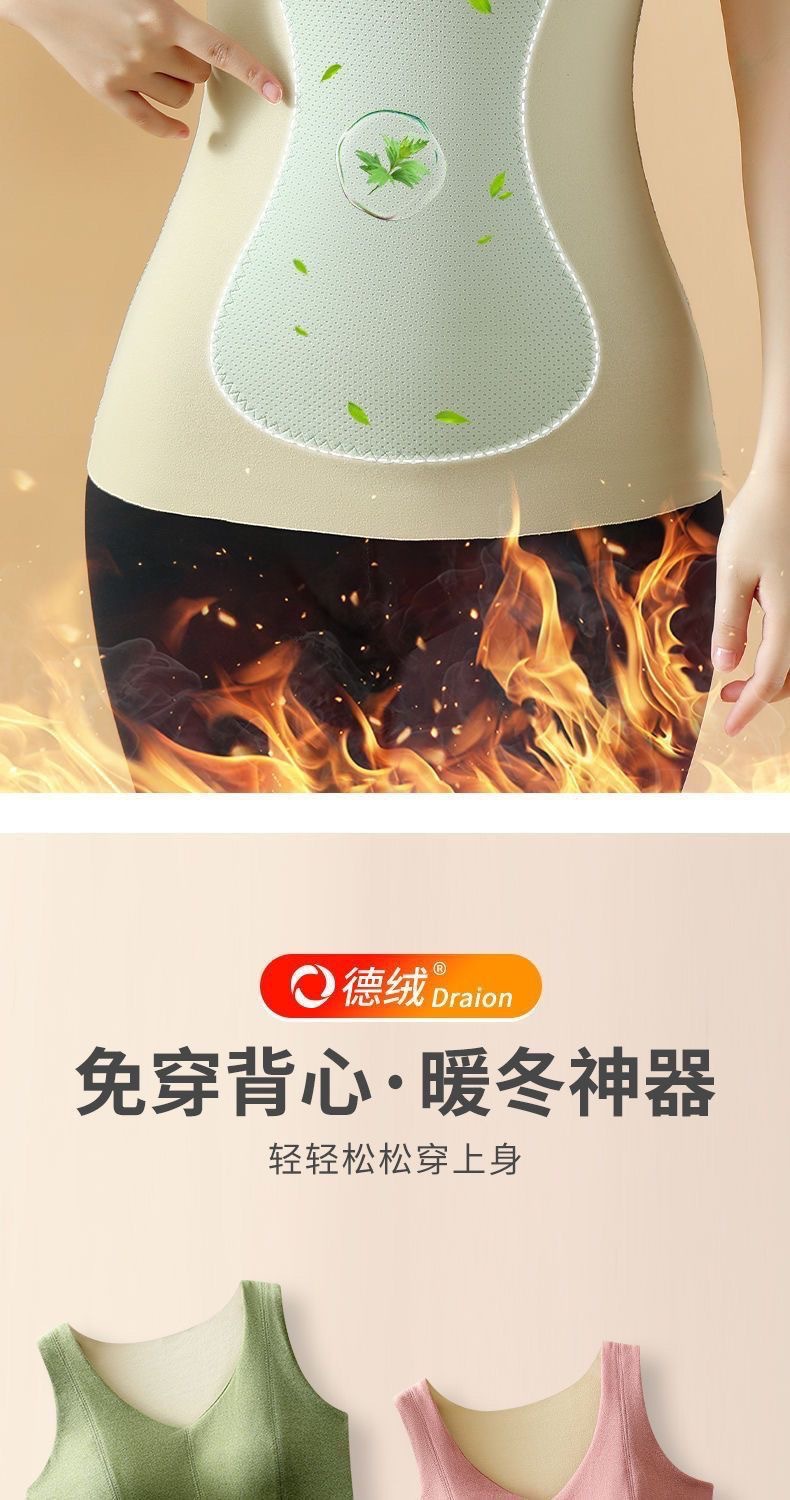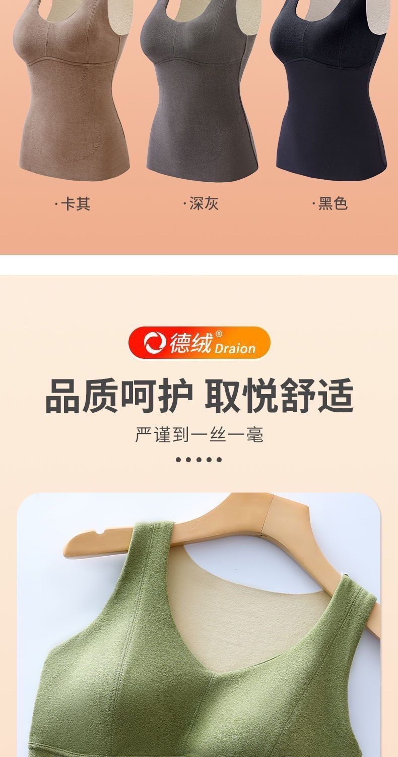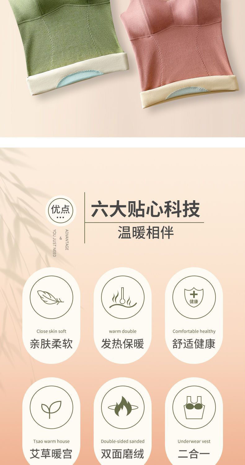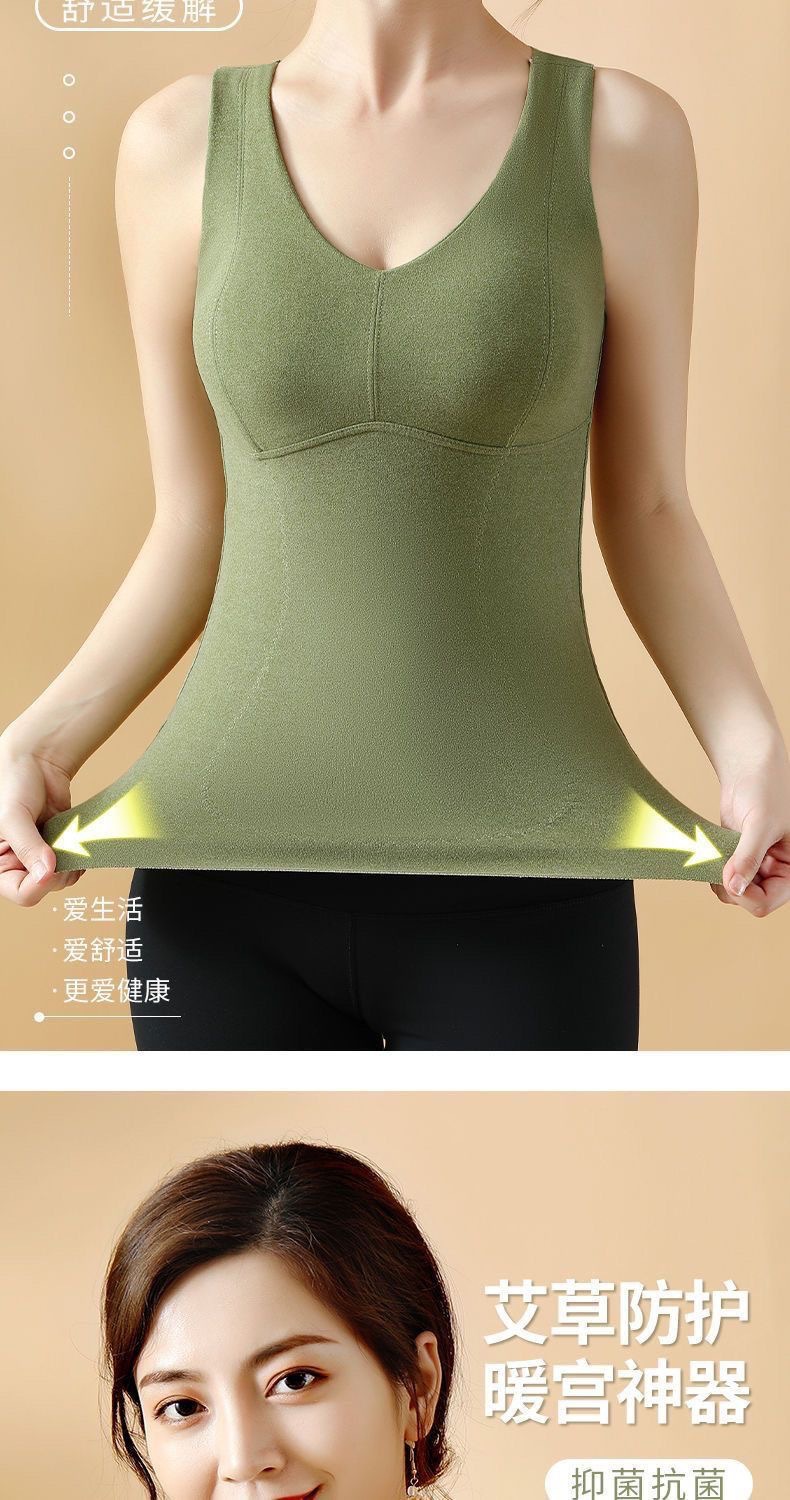 【艾草防护&暖宫神器!抢2件巨划算!】爆款德绒发热保暖背心 女士带胸垫加绒秋冬百搭吊带背心 打底衫内衣